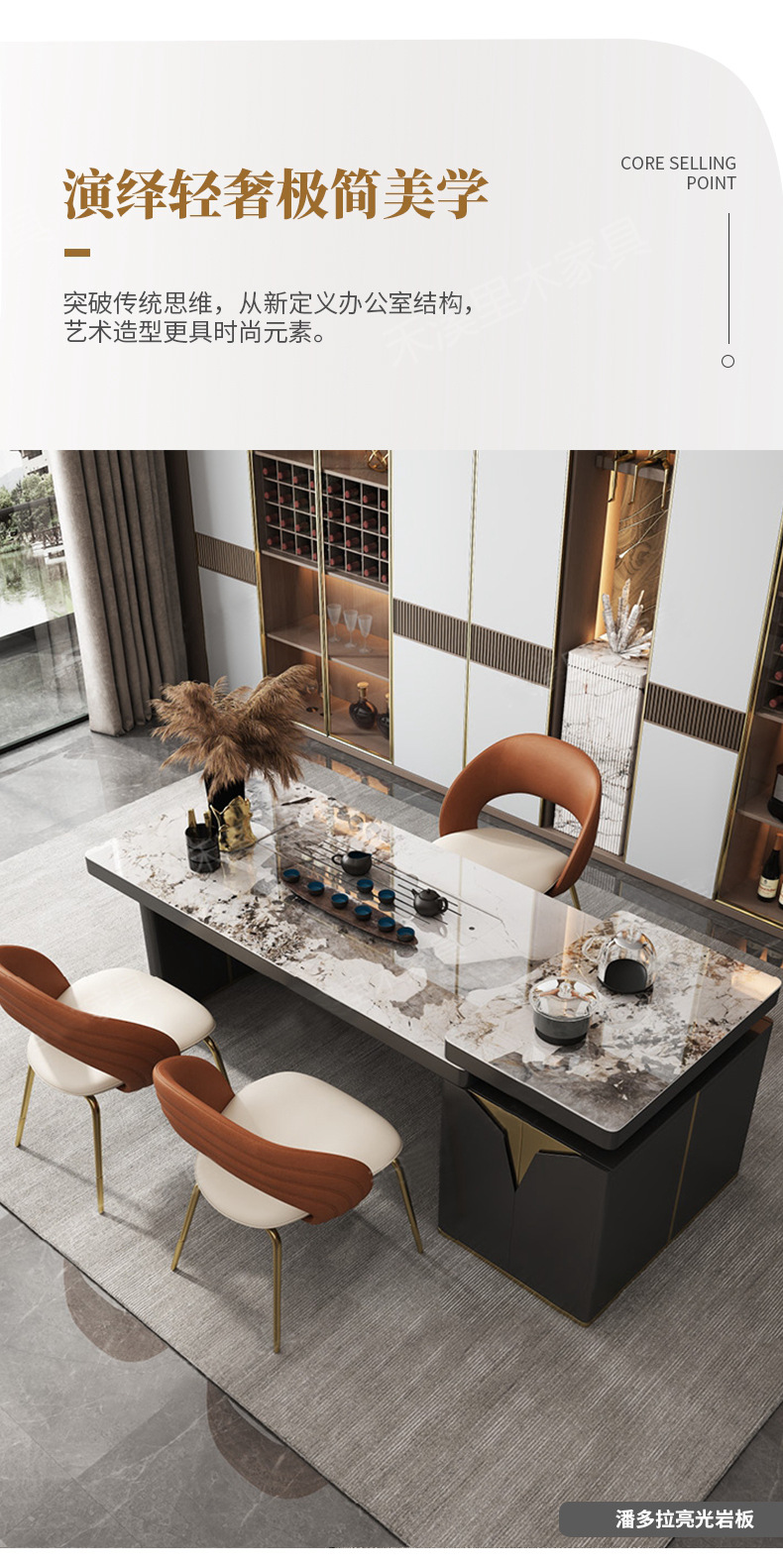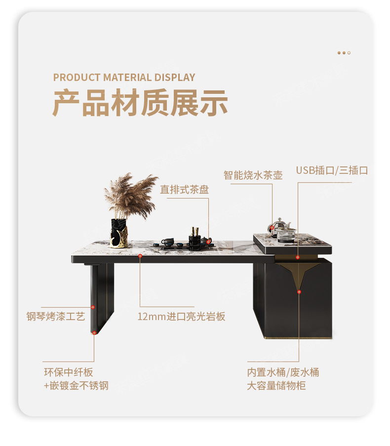 商品名称: 岩板轻奢功夫茶桌大板茶台办公桌一体