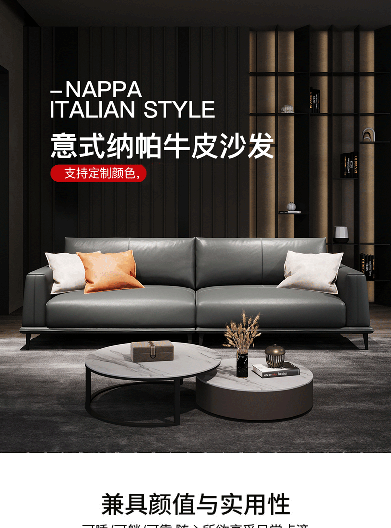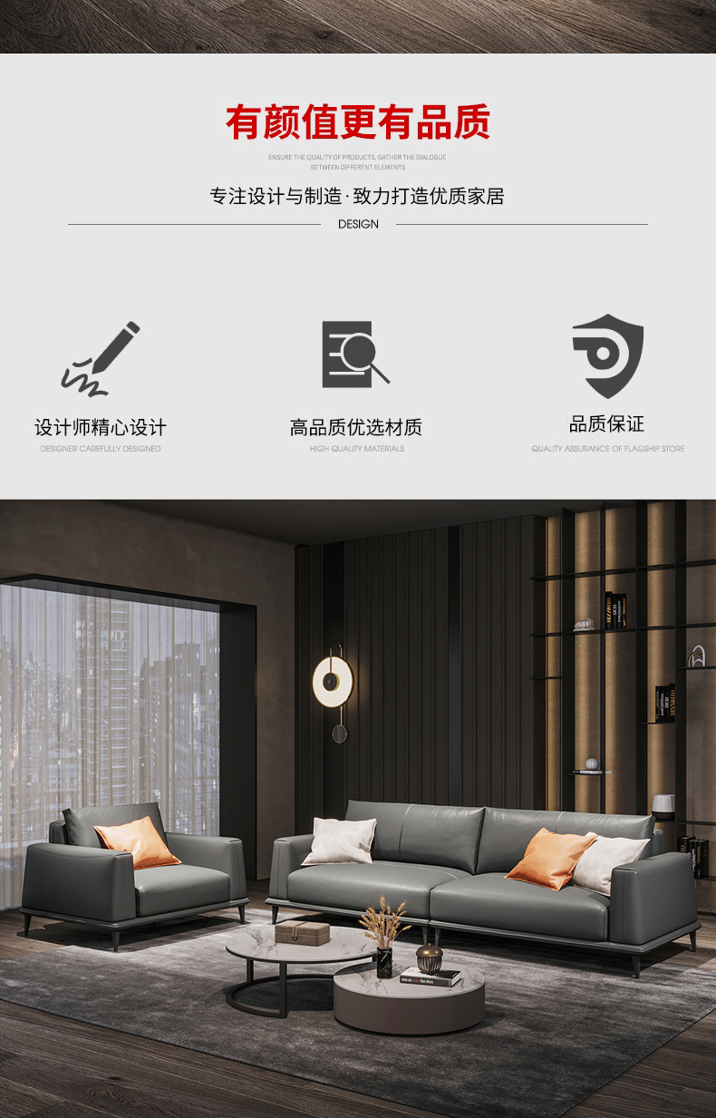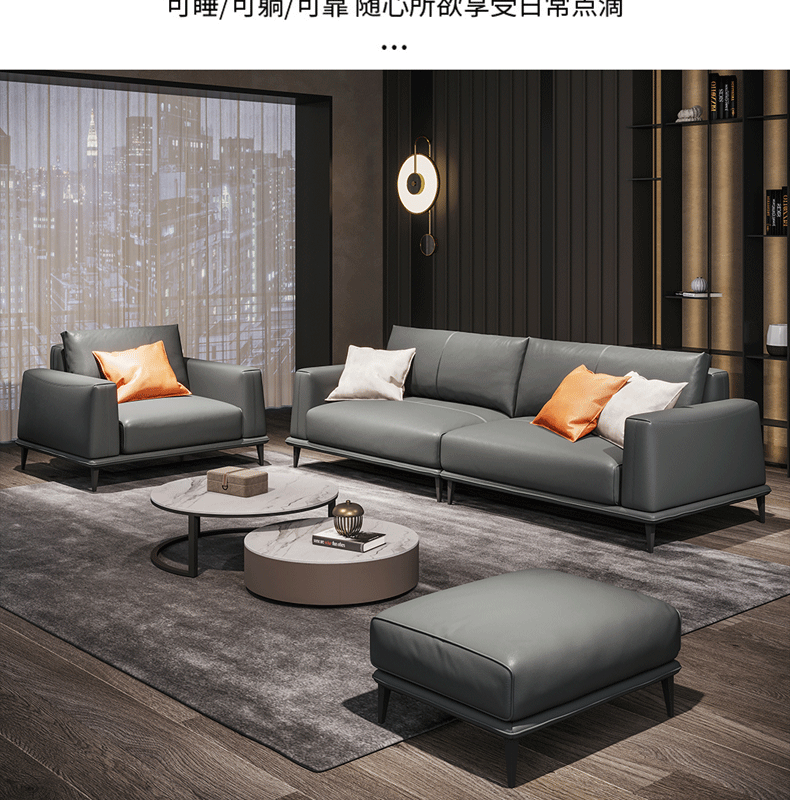 磷贝 皮艺办公沙发1+1+3组合办公室会客区沙发接待洽谈沙发 三人位860*2200*900 单人位860*1100*900