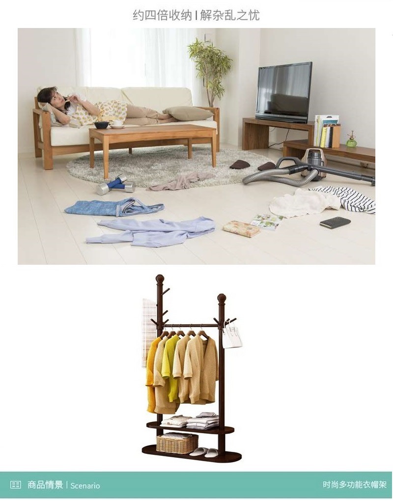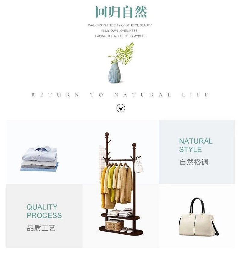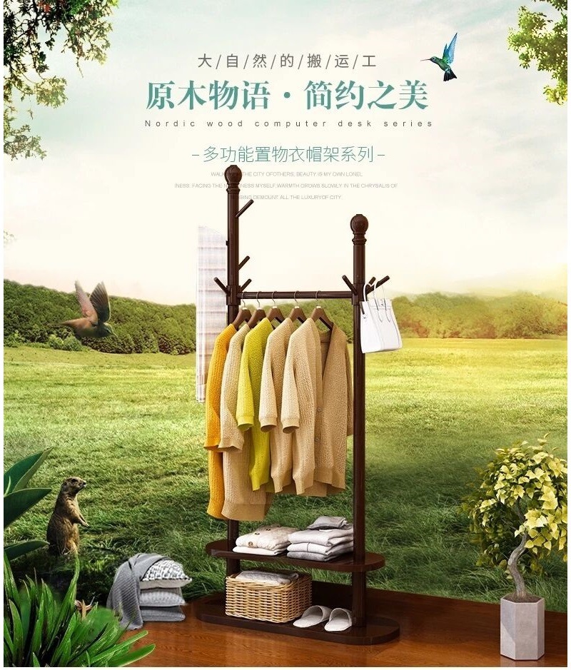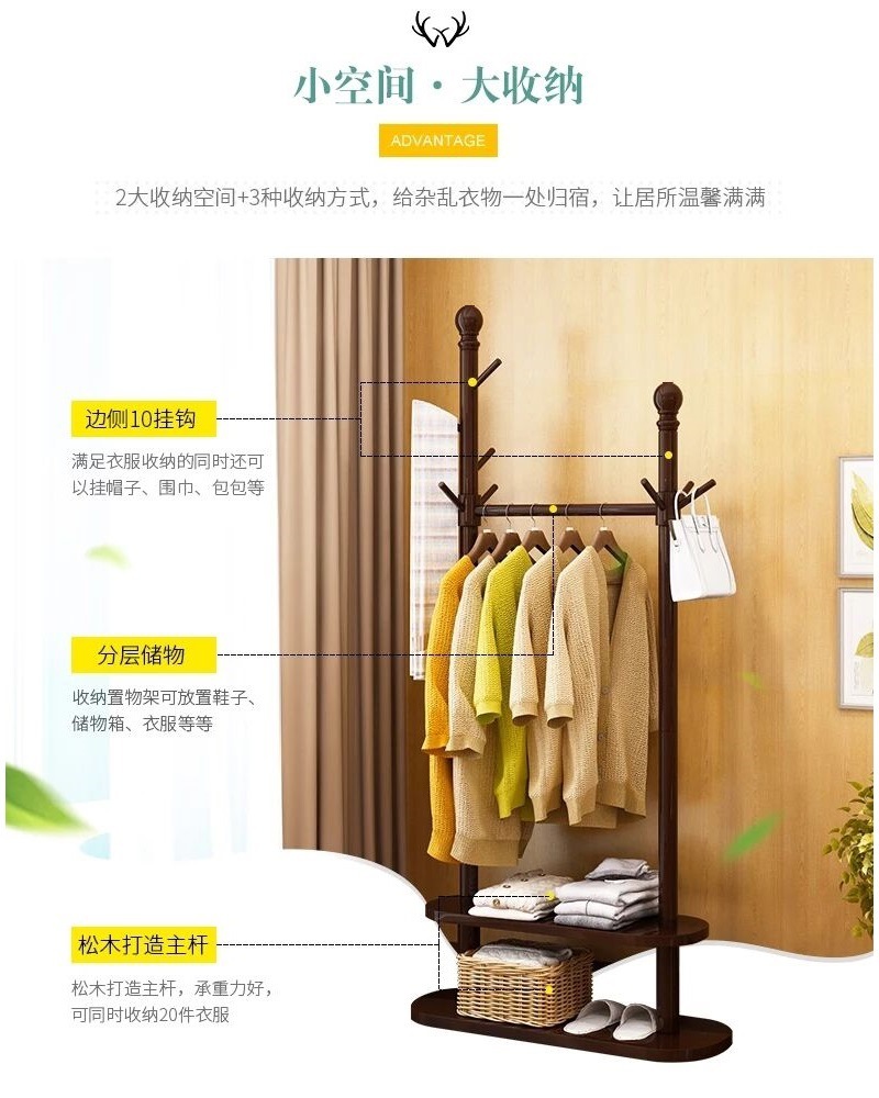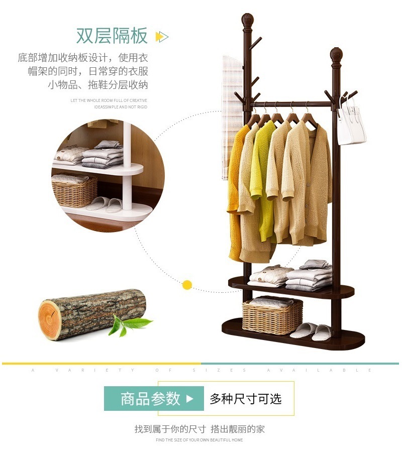 商品名称: 衣帽架多功能衣服架子实木落地挂衣架置物架