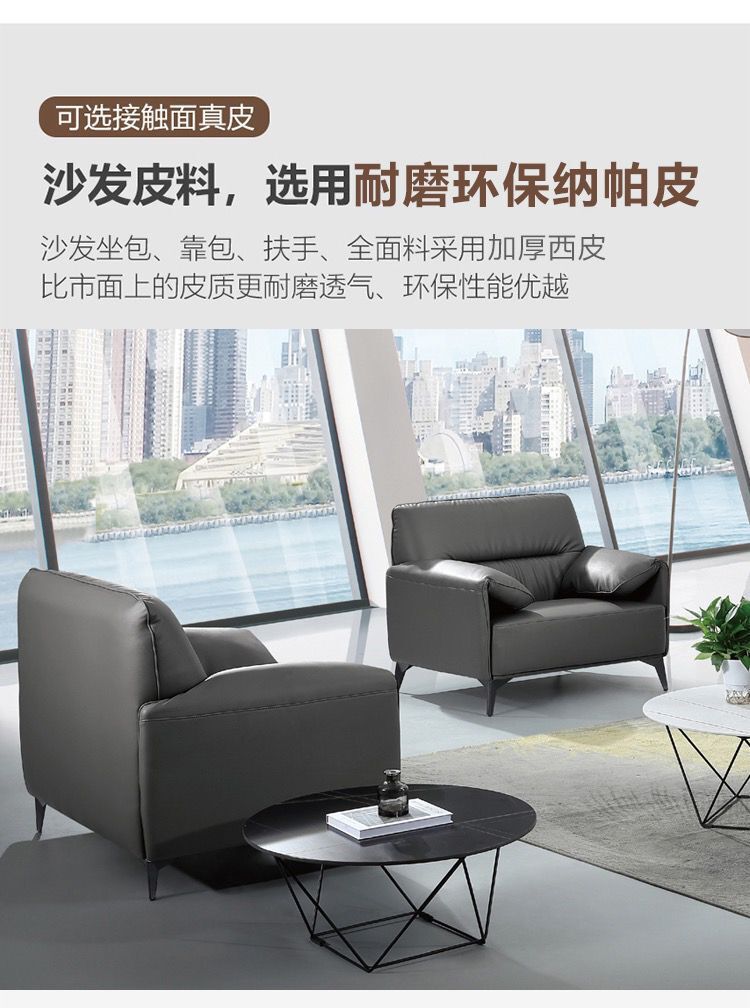 磷贝 现代简约意式1+1+3沙发组合商务老板会客洽谈接待办公室沙发 三人位880*2080*860 单人位880*1080*860