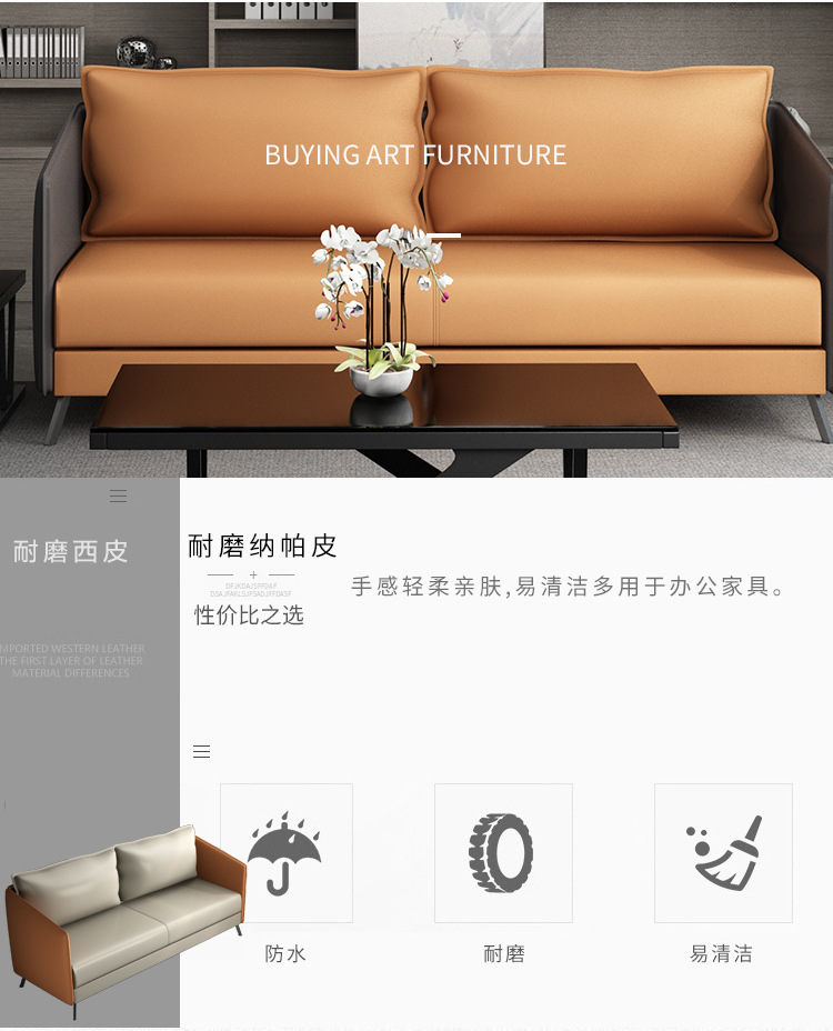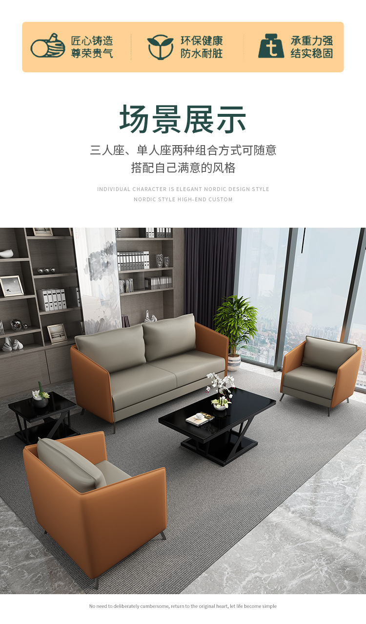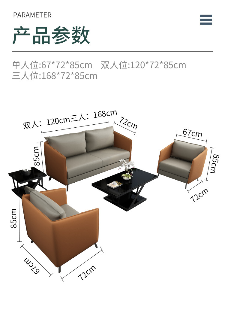 磷贝 商务办公沙发洽谈接待简约会客办公室沙发1+1+3组合 三人位850*1680*720 单人位850*670*720