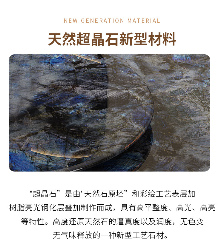 磷贝 轻奢超晶石餐桌家用饭桌带转盘圆桌 760*1300