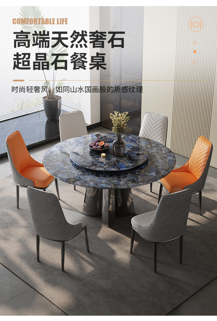 商品名称: 轻奢超晶石餐桌家用饭桌带转盘圆桌