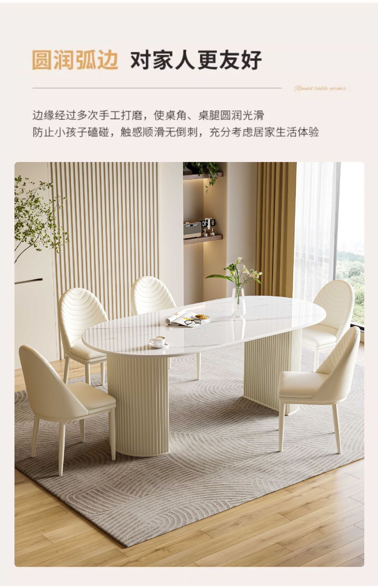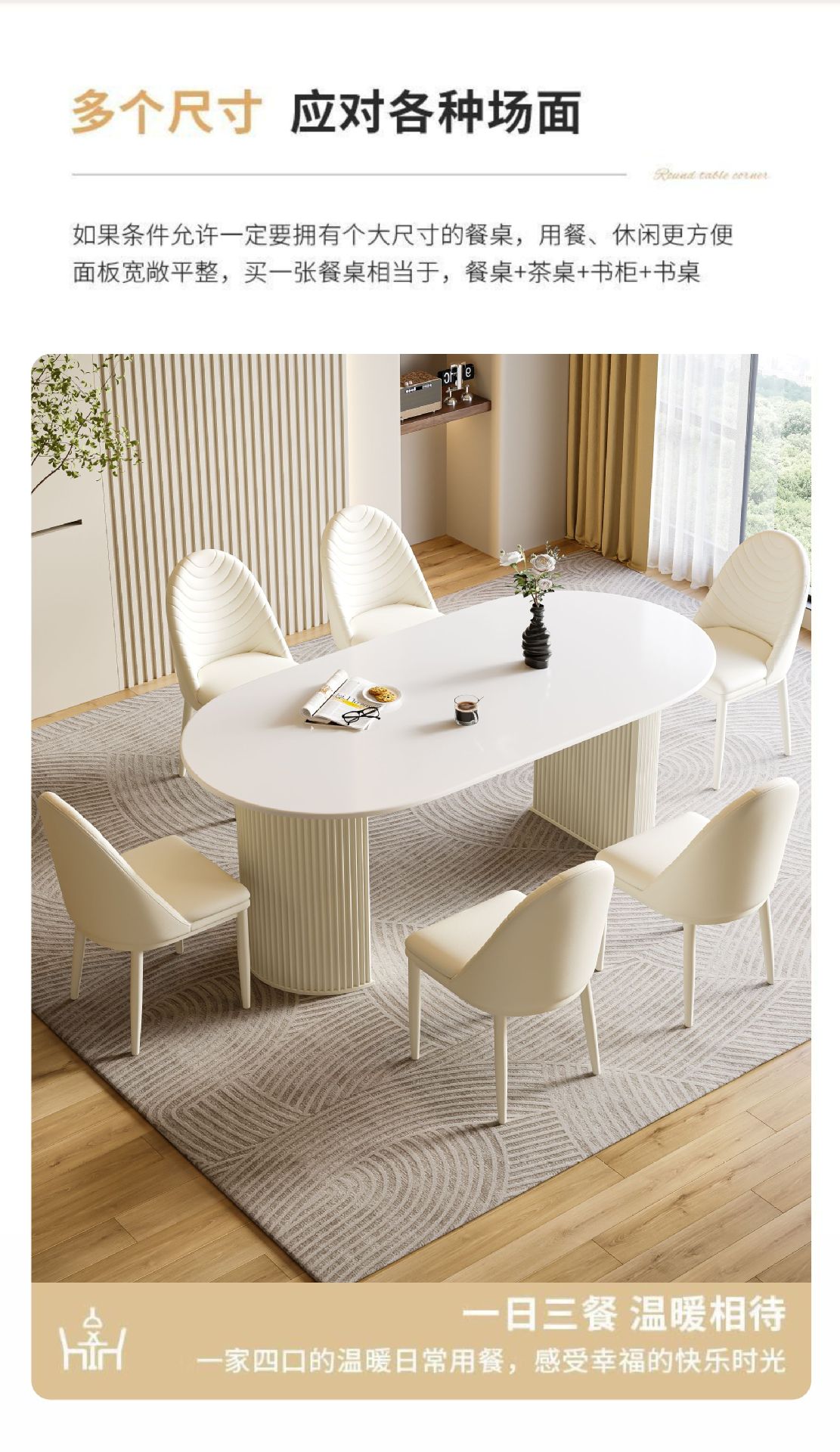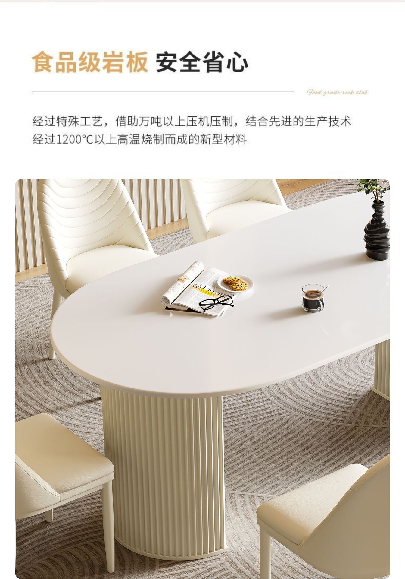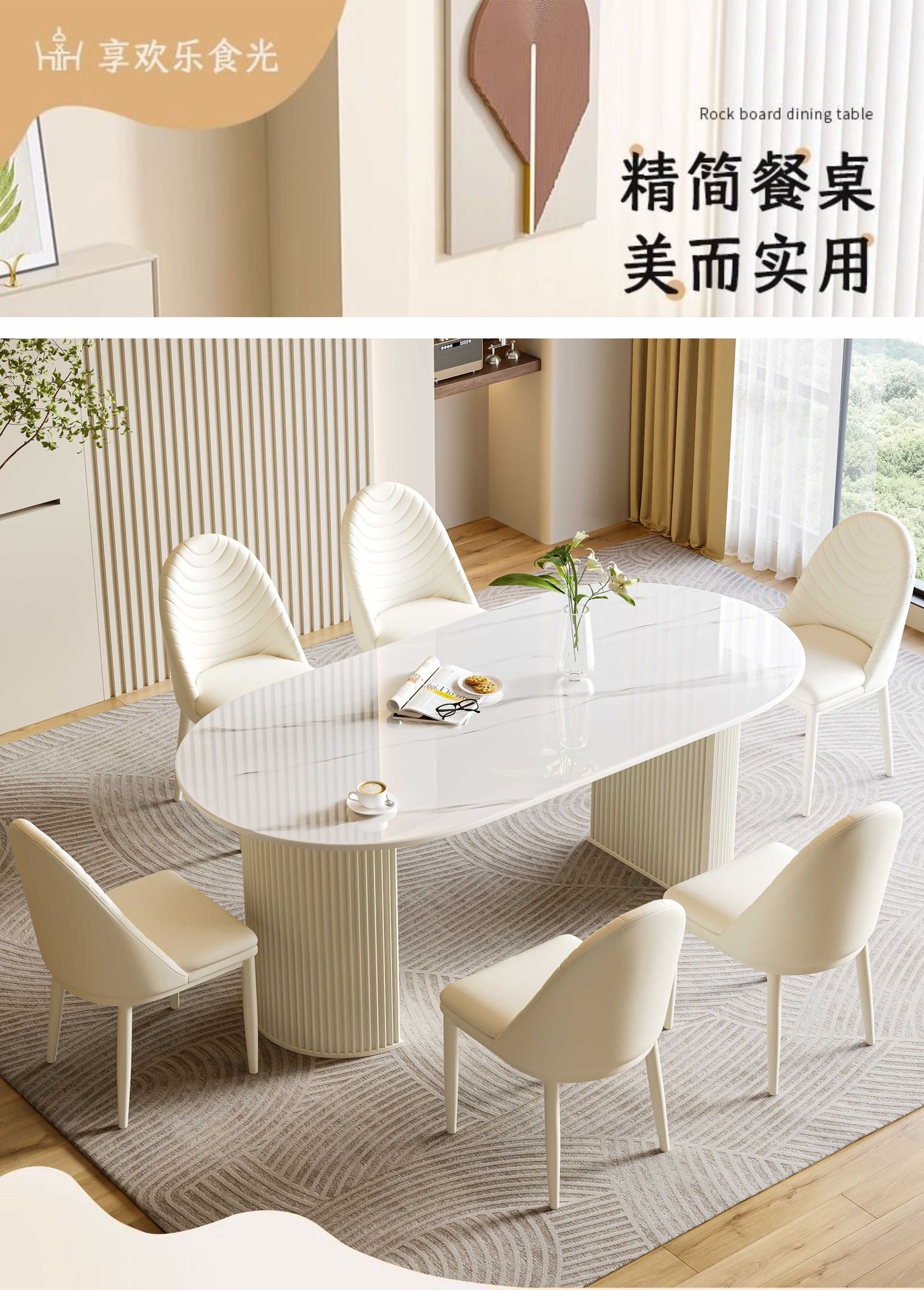 商品名称: 奶油风岩板餐桌椭圆饭桌多功能桌子
