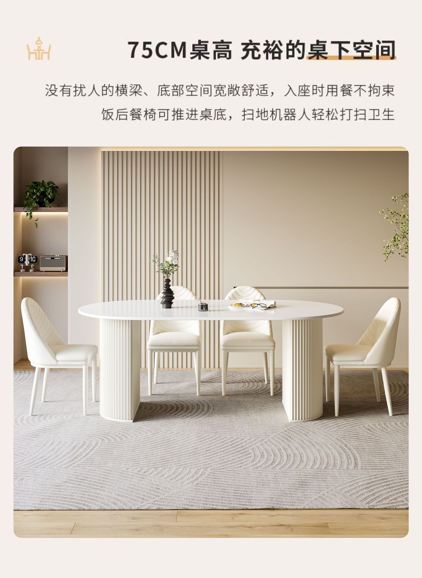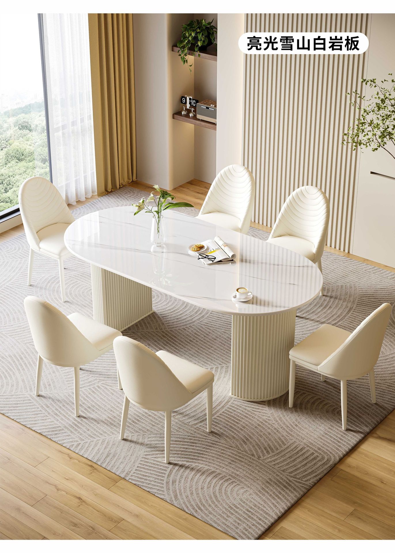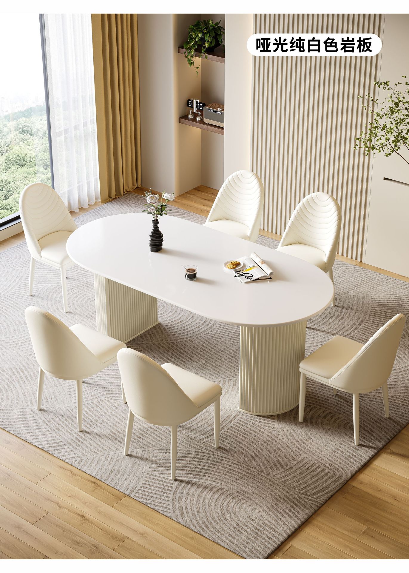 商品名称: 奶油风岩板餐桌椭圆饭桌多功能桌子