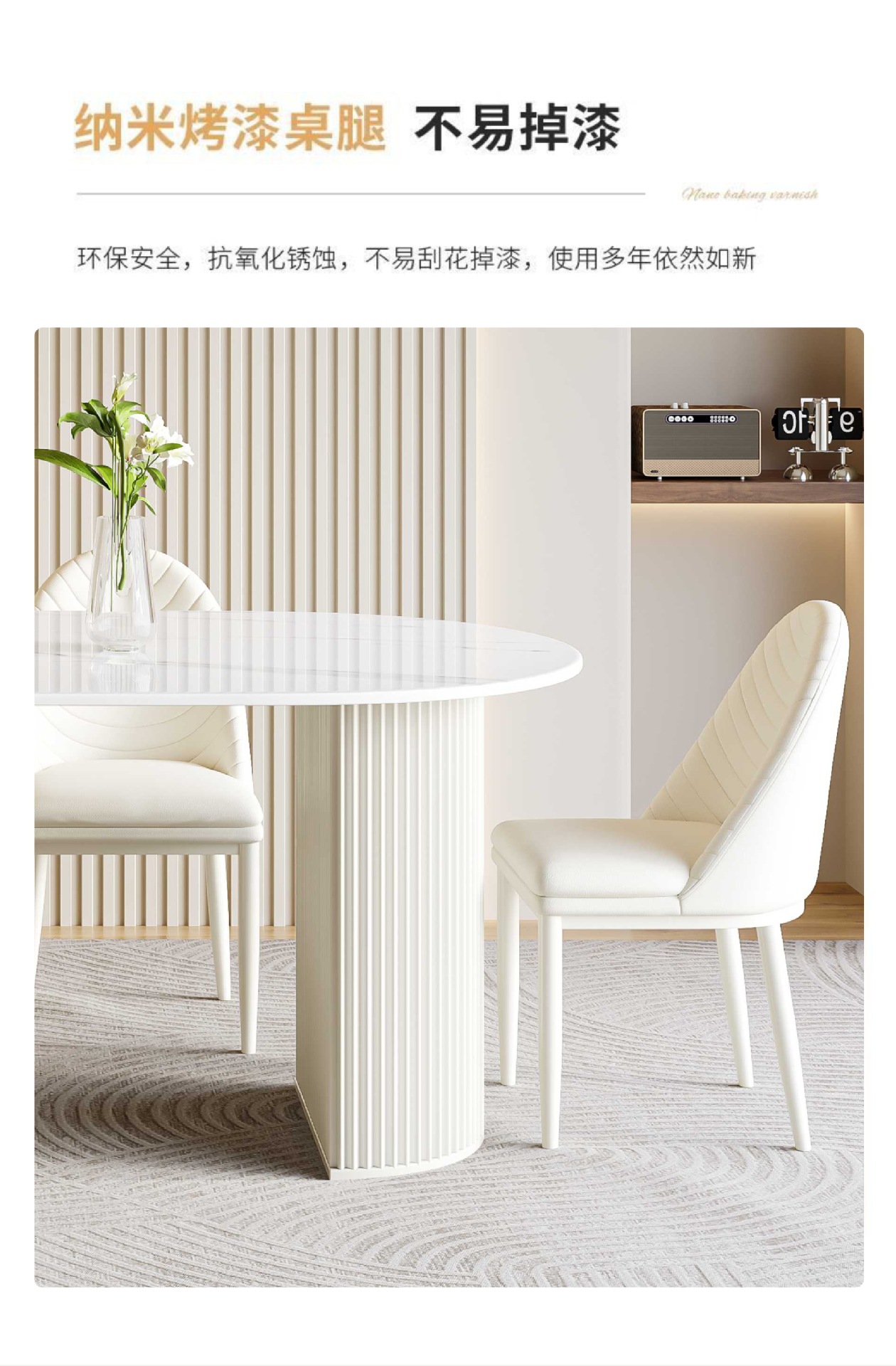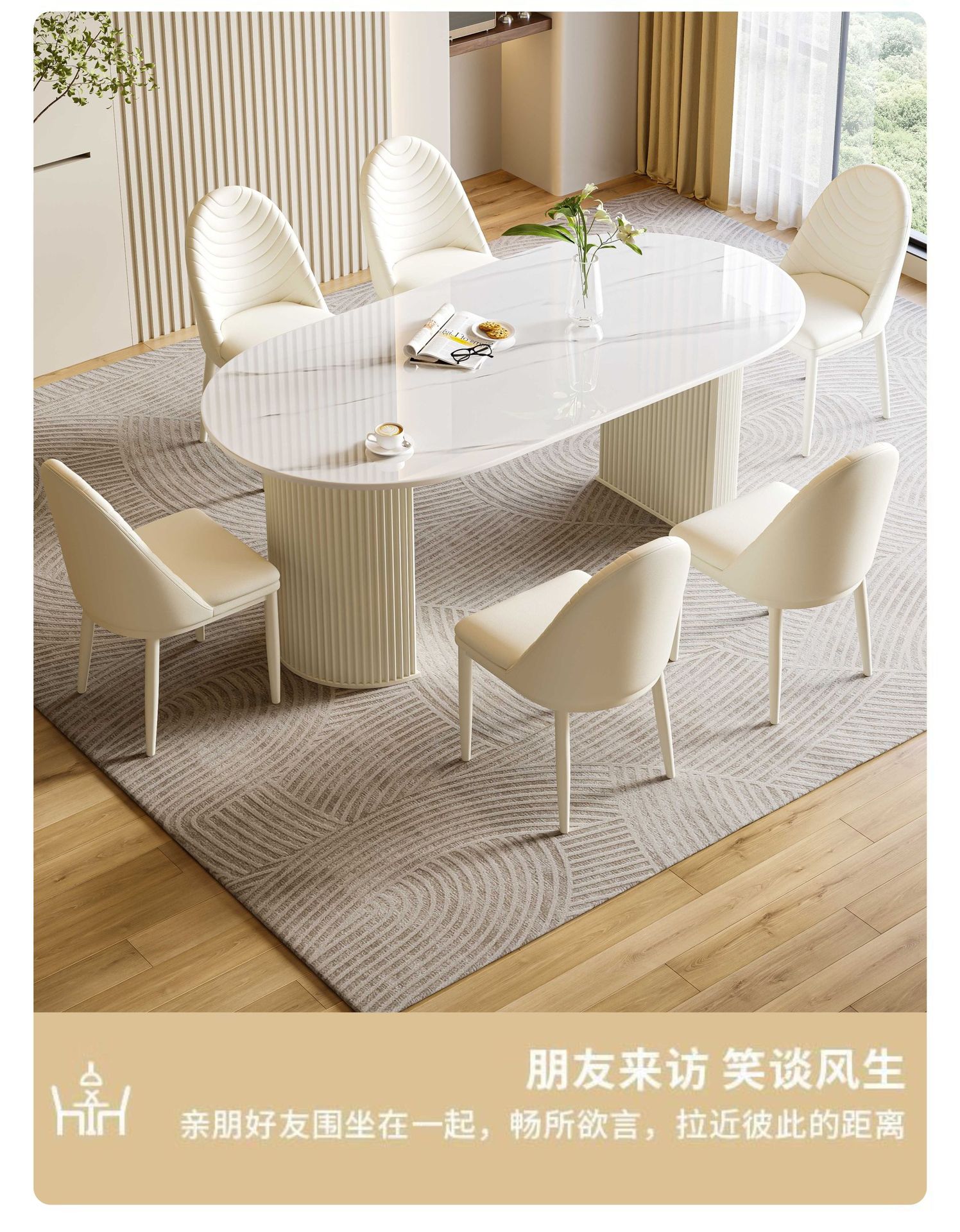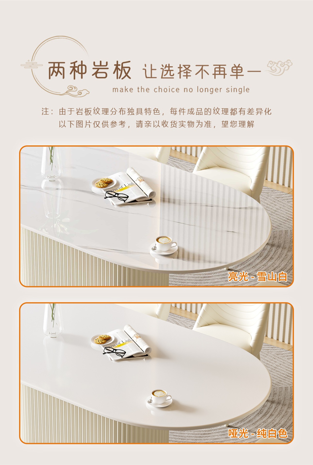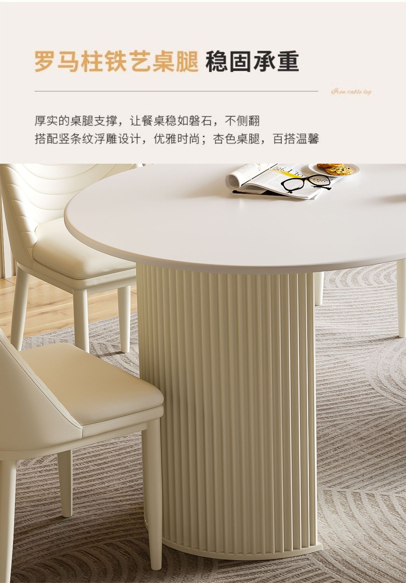 商品名称: 奶油风岩板餐桌椭圆饭桌多功能桌子