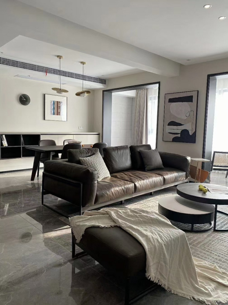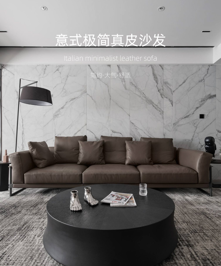 磷贝 意式简约1+1+3真皮沙发组合客厅沙发工业风皮艺沙发办公室沙发 三人位880*2250*980 单人位880*1180*980