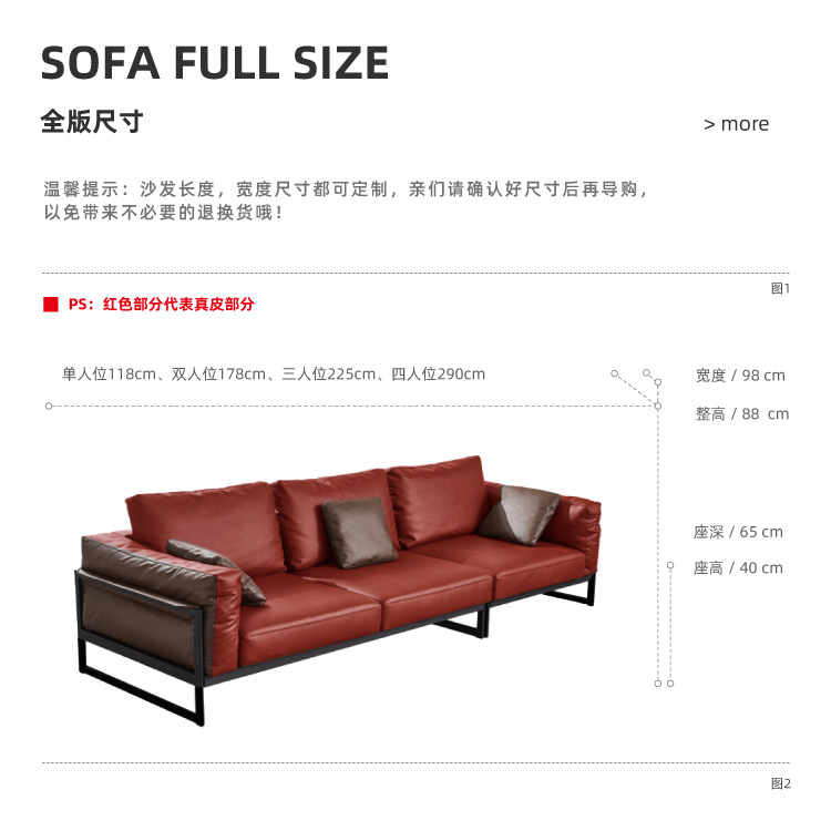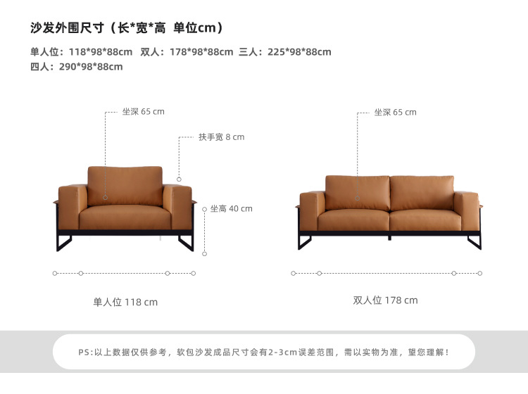 商品名称: 意式简约1+1+3真皮沙发组合客厅沙发工业风皮艺沙发办公室沙发