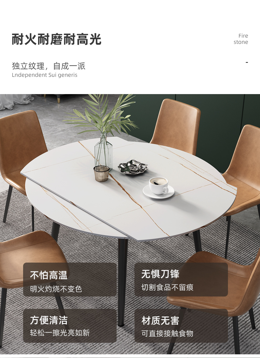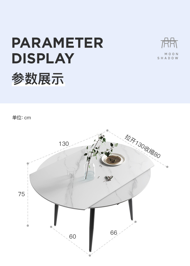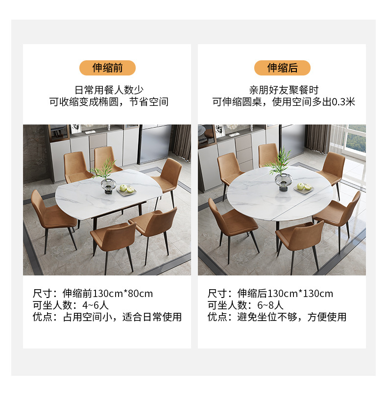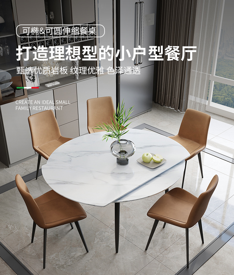 商品名称: 岩板伸缩餐桌折叠饭桌方圆两用多功能餐桌圆桌
