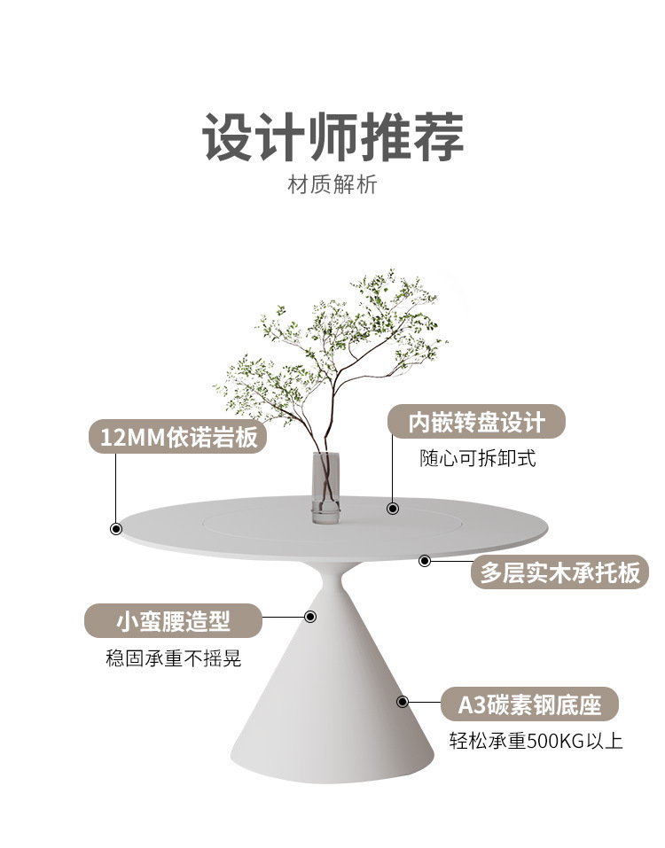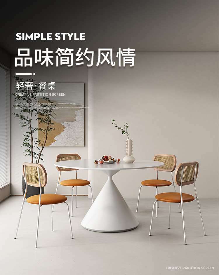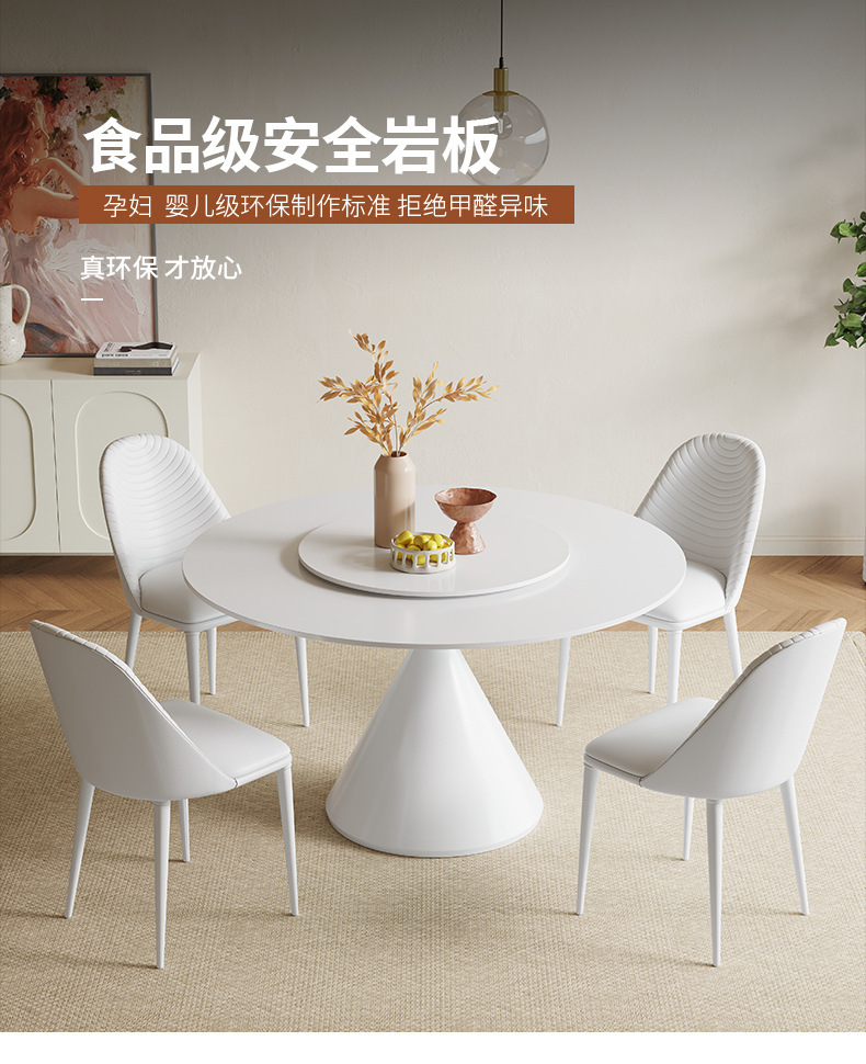 商品名称: 奶油风岩板餐桌吃饭桌简约纯白圆桌