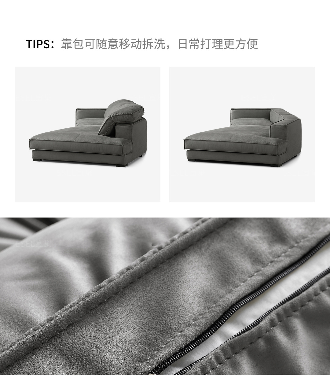磷贝 意式简约转角弧形客厅沙发布达佩斯异形沙发 740*2400*1100