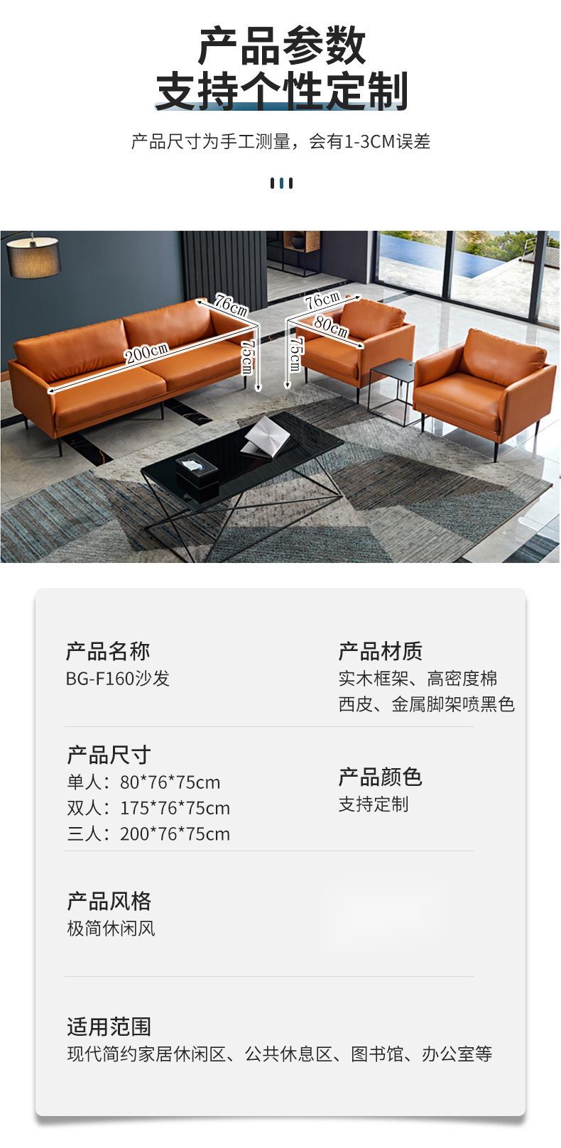 磷贝 意式简约客厅沙发3+1+1组合 三人位750*2000*760 单人位750*800*760