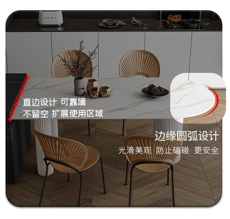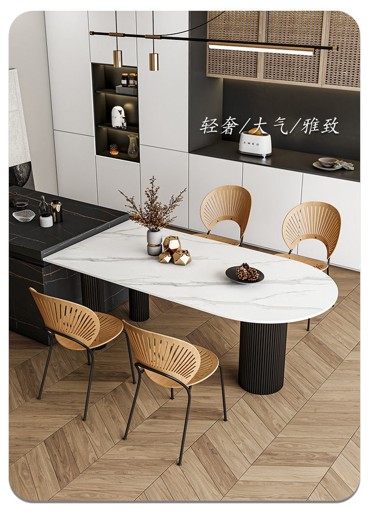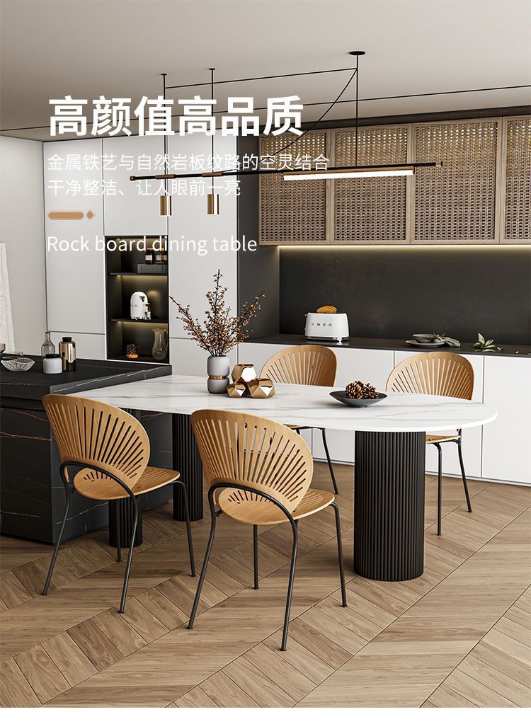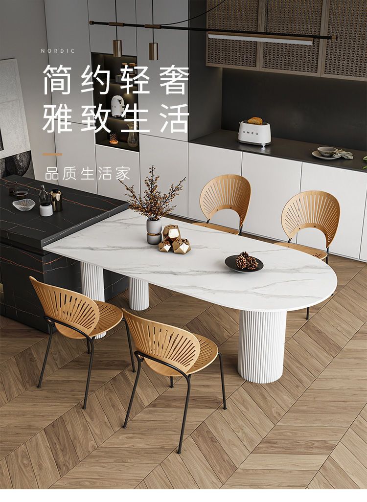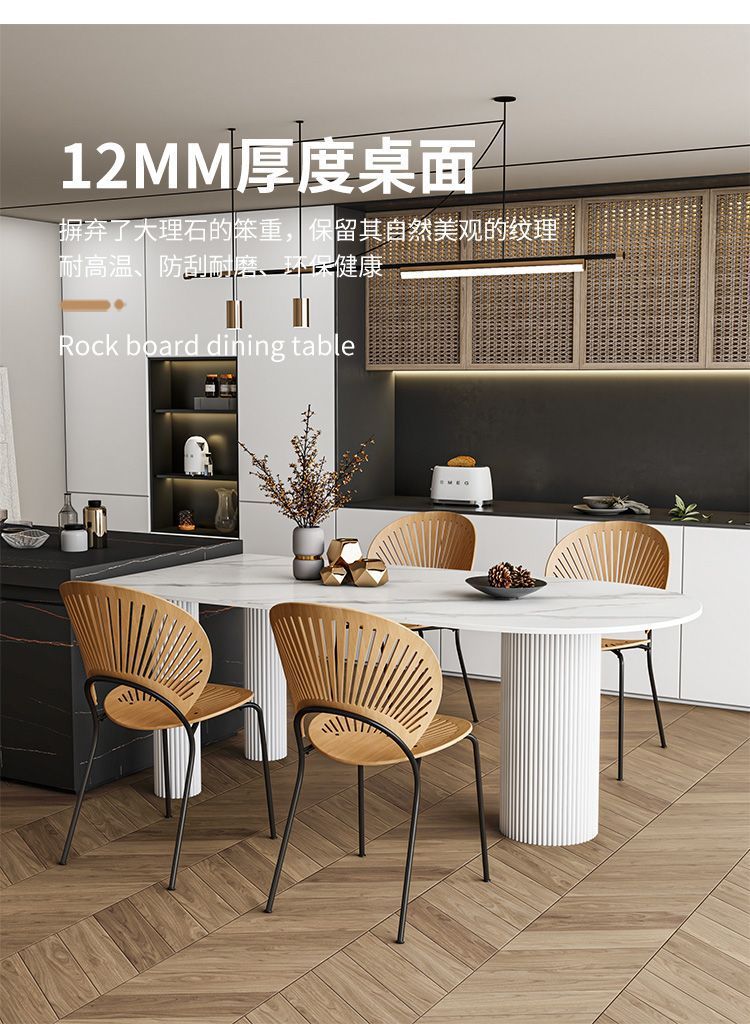 商品名称: 奶油系靠墙半圆弧岩板圆柱餐桌饭桌轻奢岛台餐台