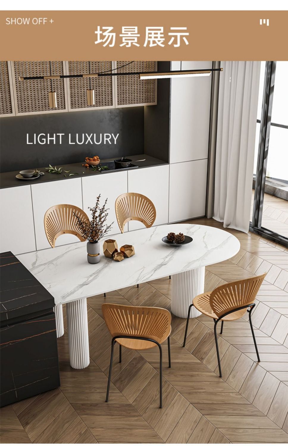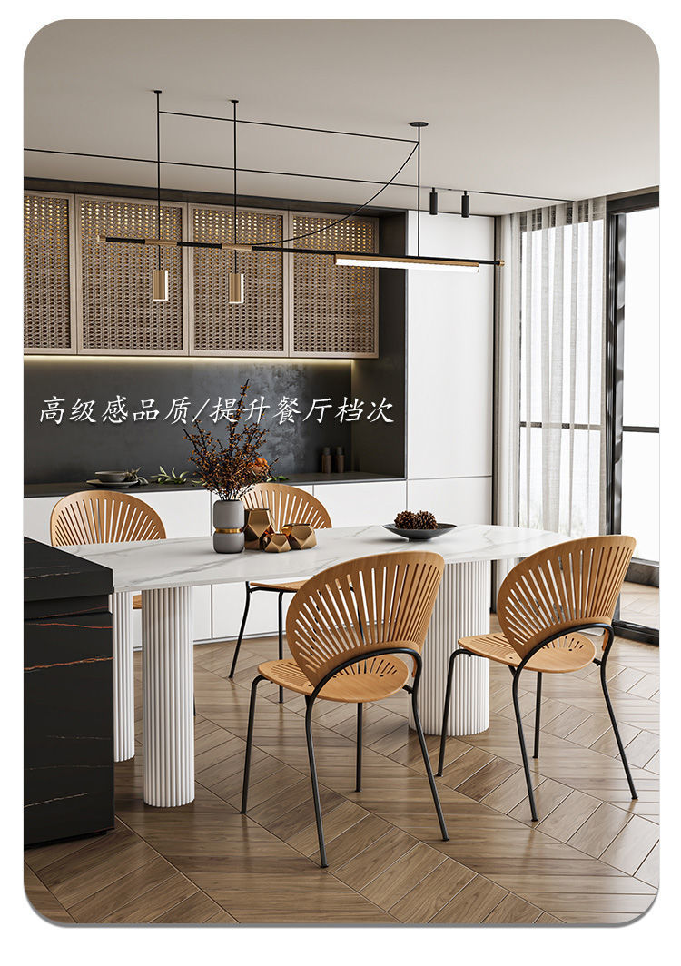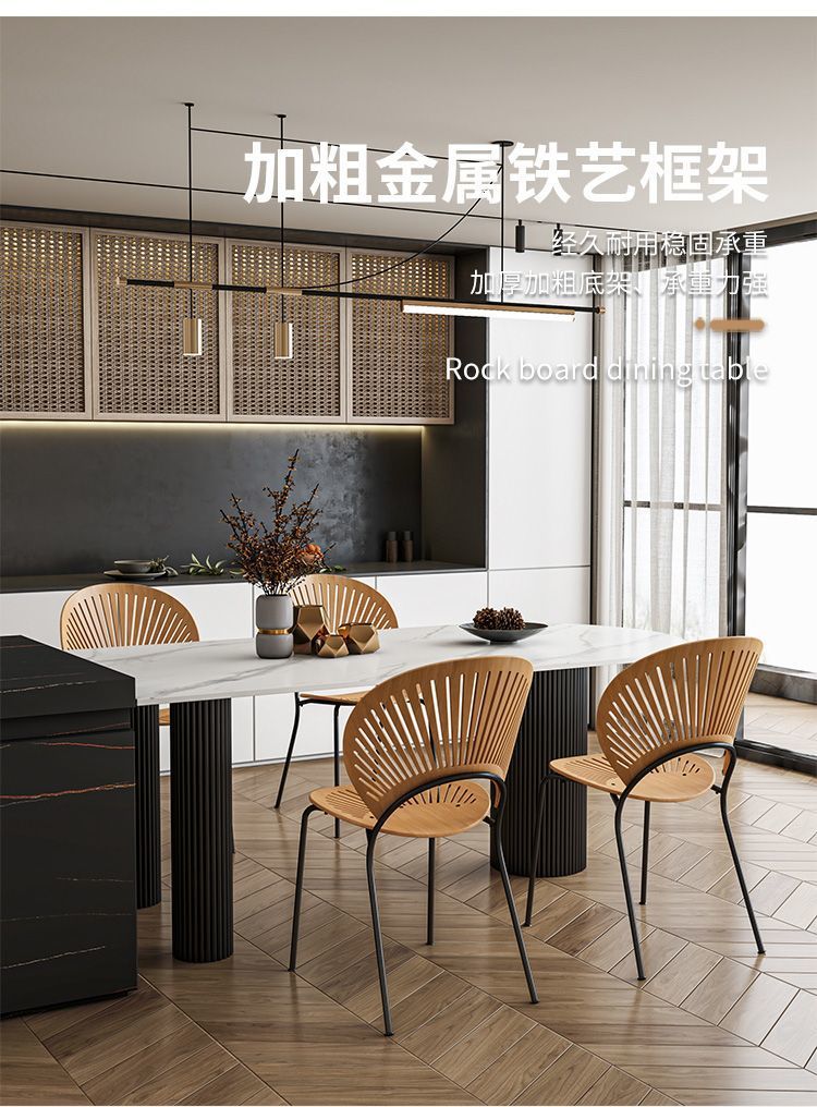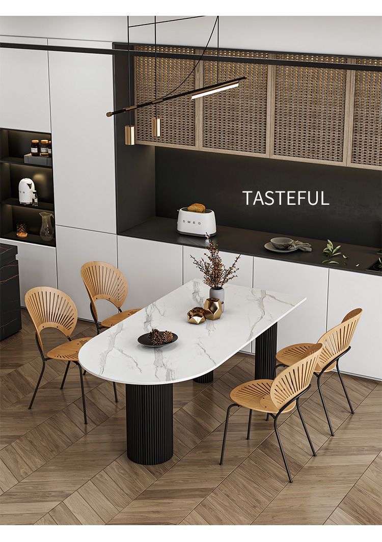 商品名称: 奶油系靠墙半圆弧岩板圆柱餐桌饭桌轻奢岛台餐台
