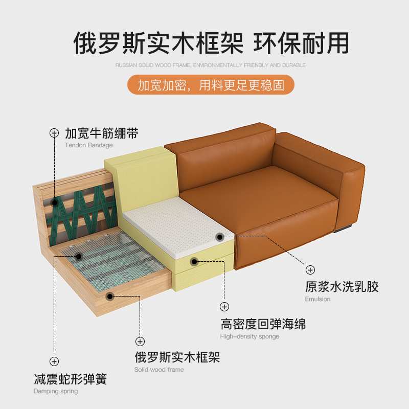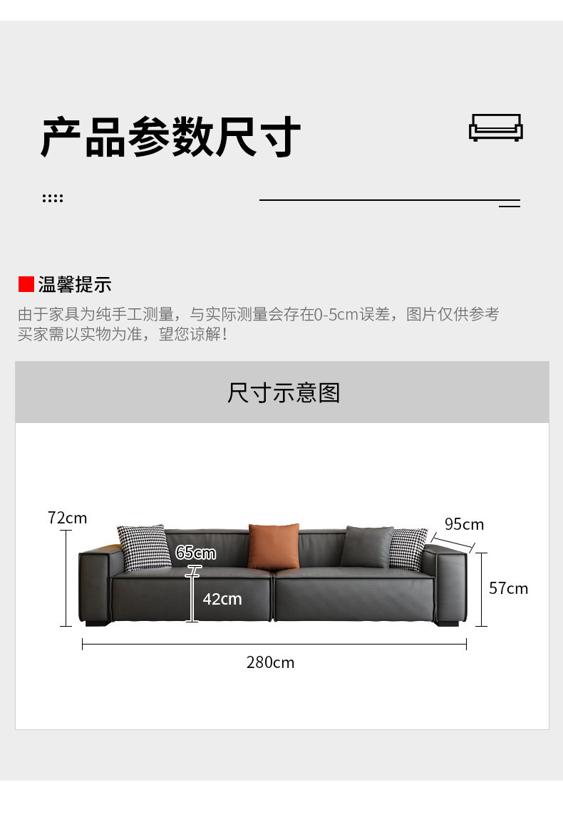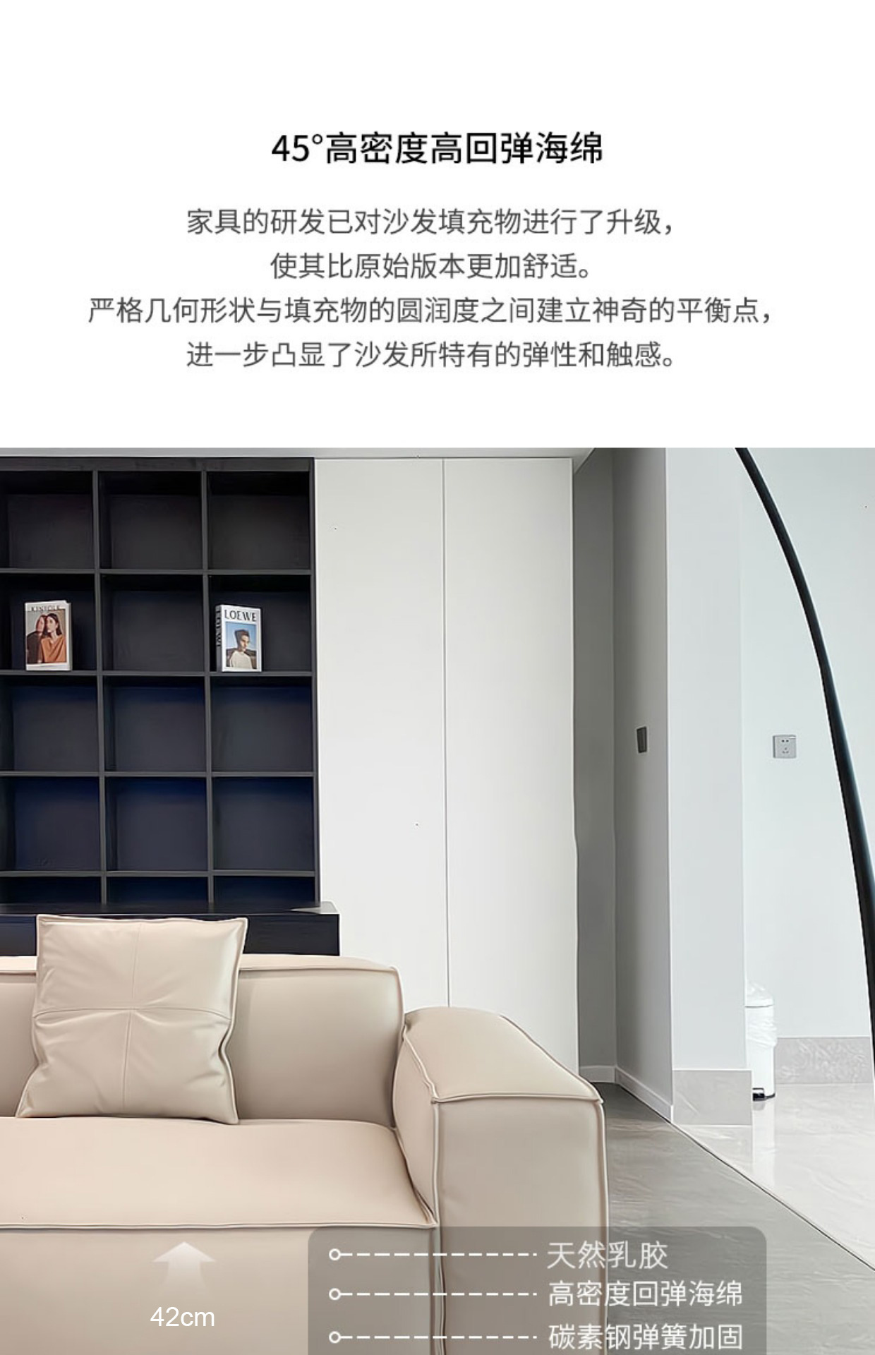 磷贝 意式极简豆腐块直排沙发客厅沙发 720*2200*950