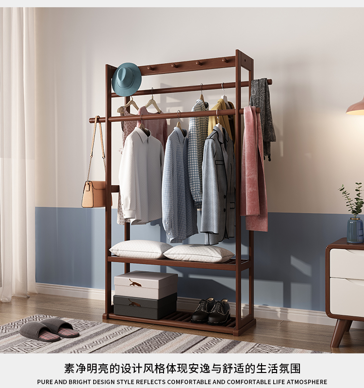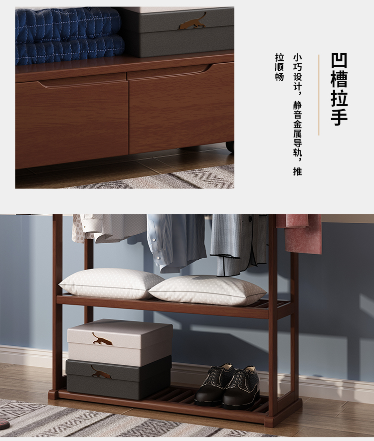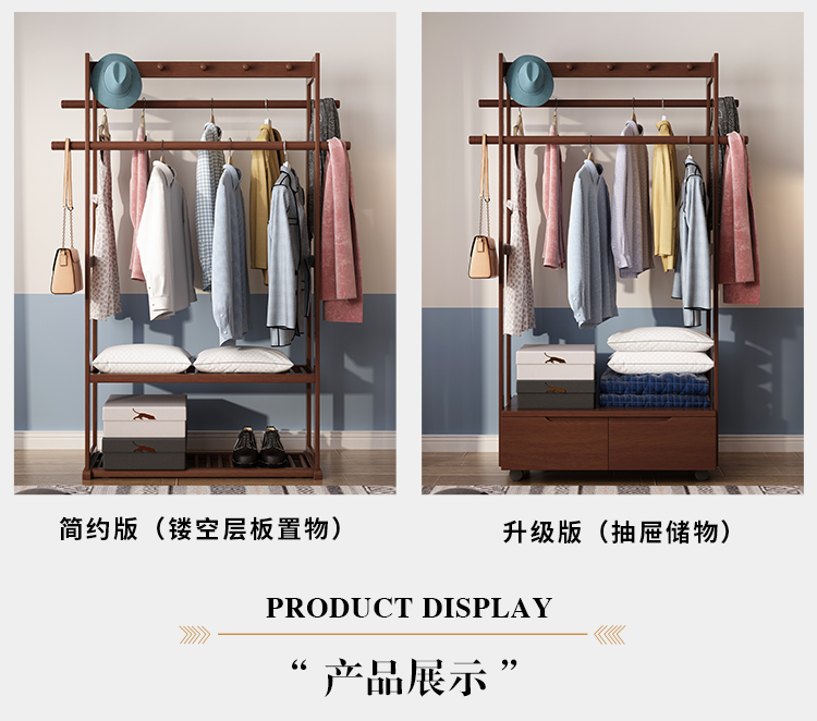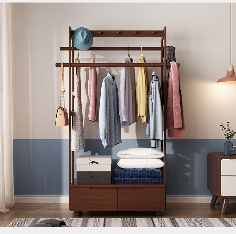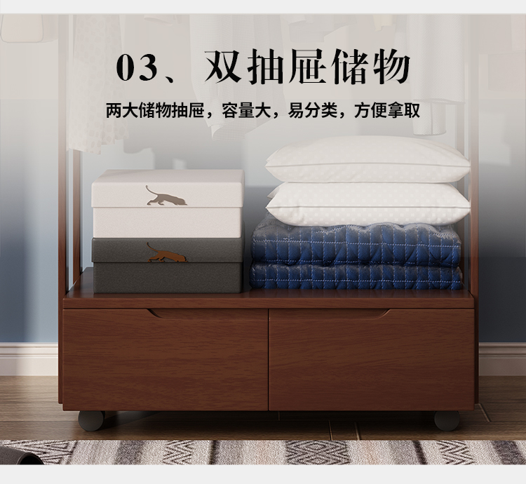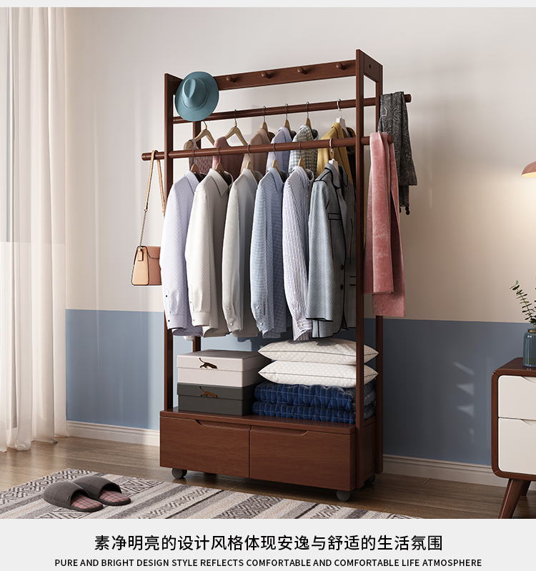 商品名称: 可移动新中式衣帽架挂衣架带抽屉收纳置物衣架