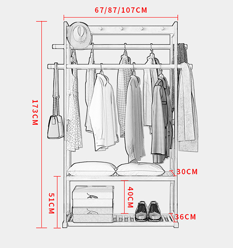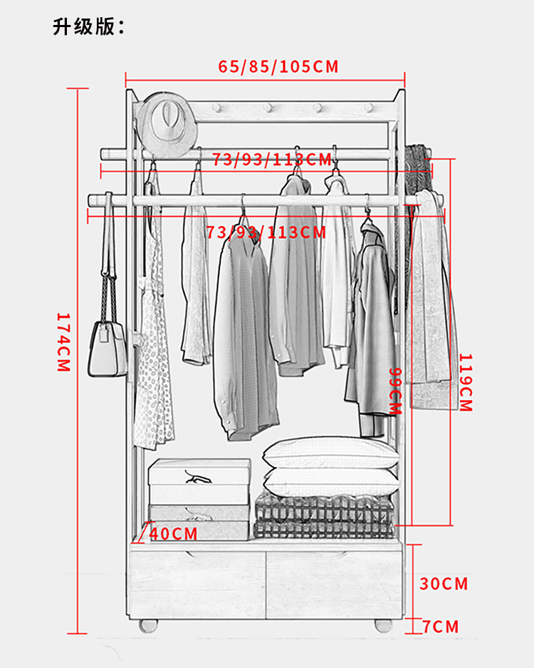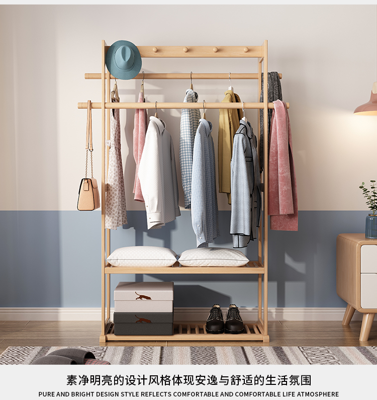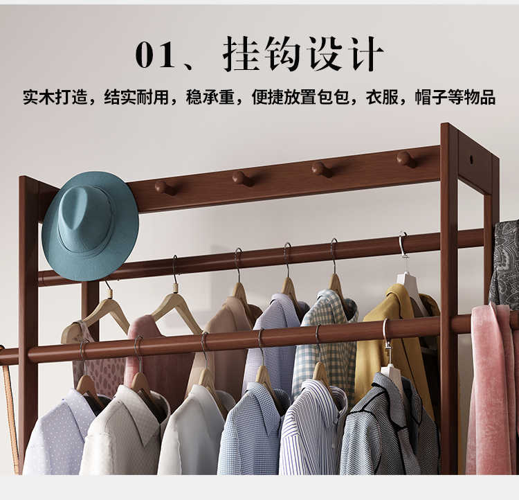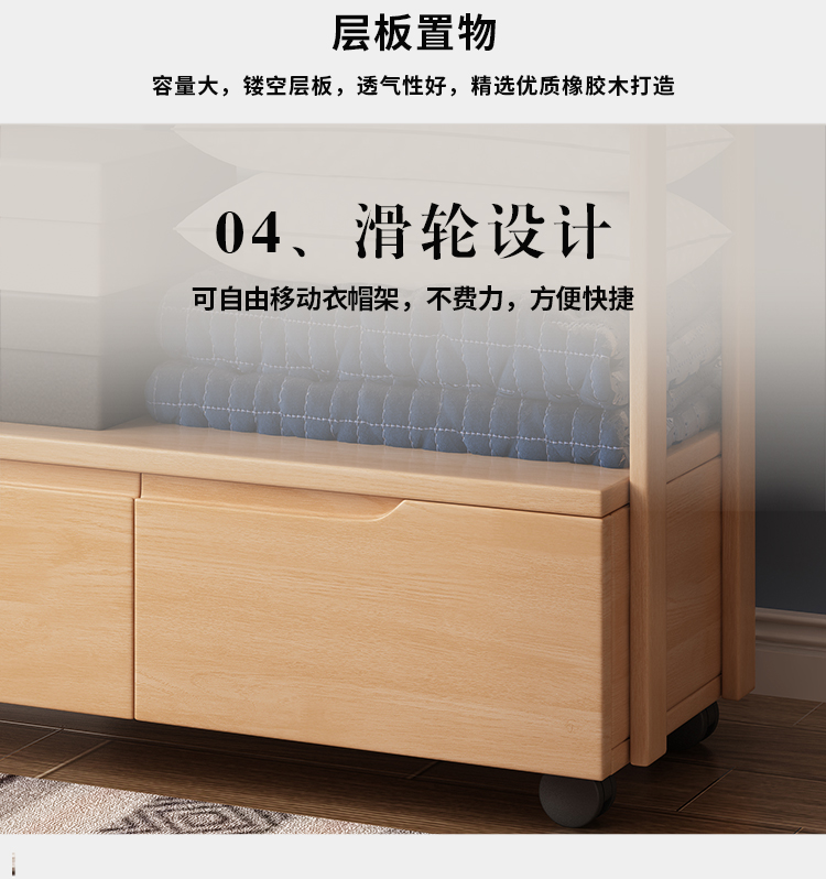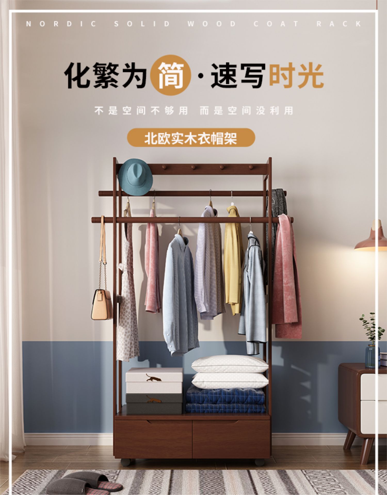 商品名称: 可移动新中式衣帽架挂衣架带抽屉收纳置物衣架