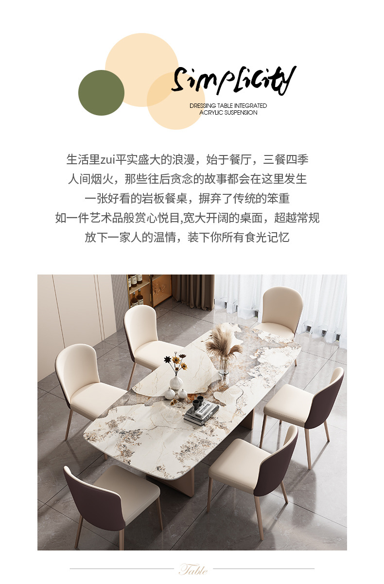 商品名称: 悬浮岩板餐桌意式长方形饭桌多功能桌