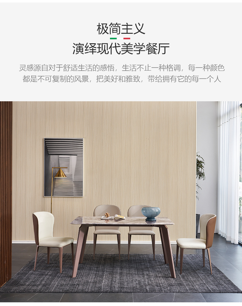 磷贝 北欧简约岩板长方形餐桌饭桌桌子 750*1400*800