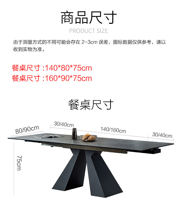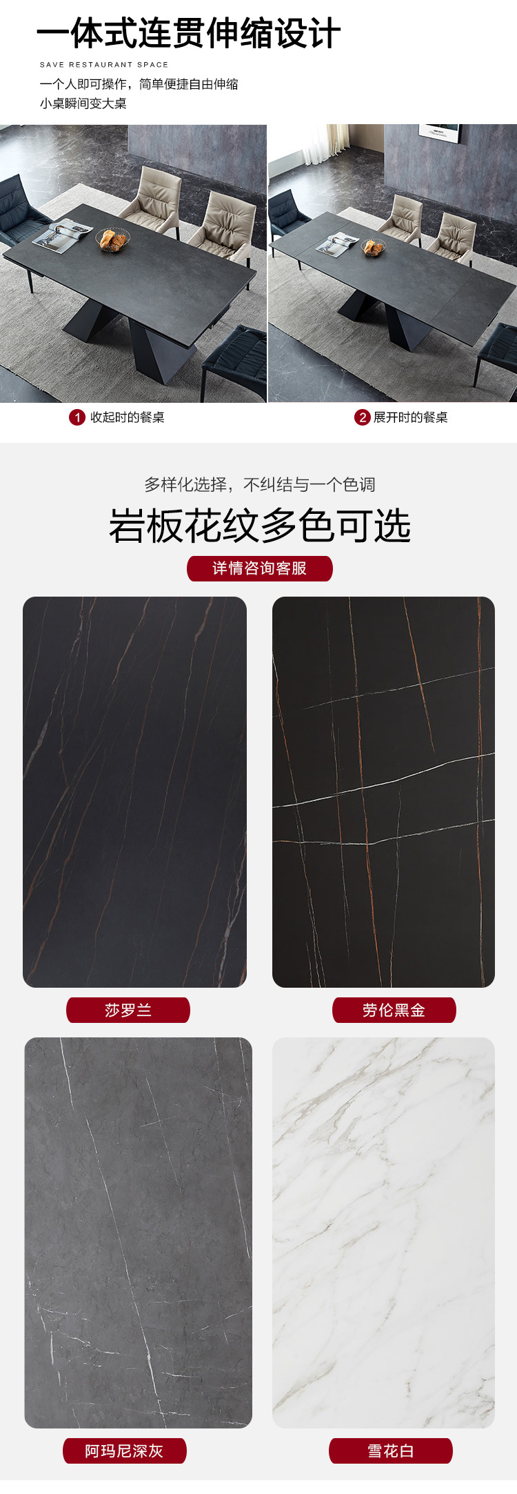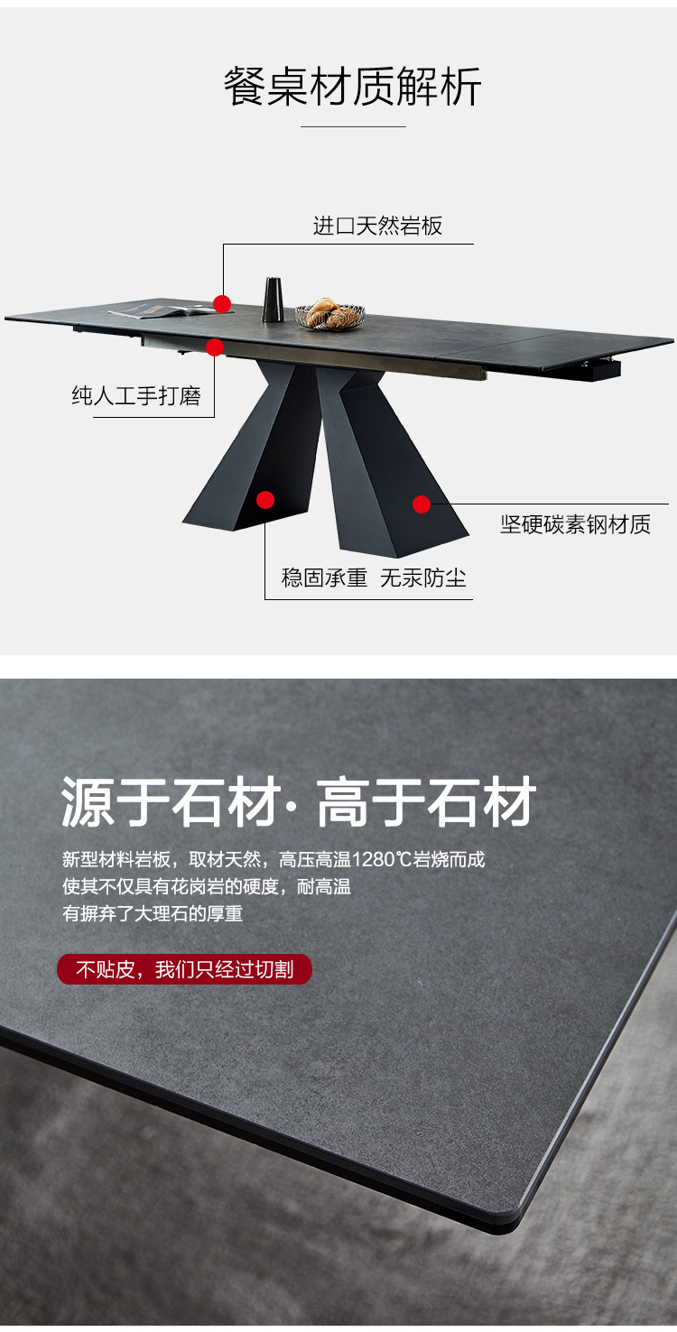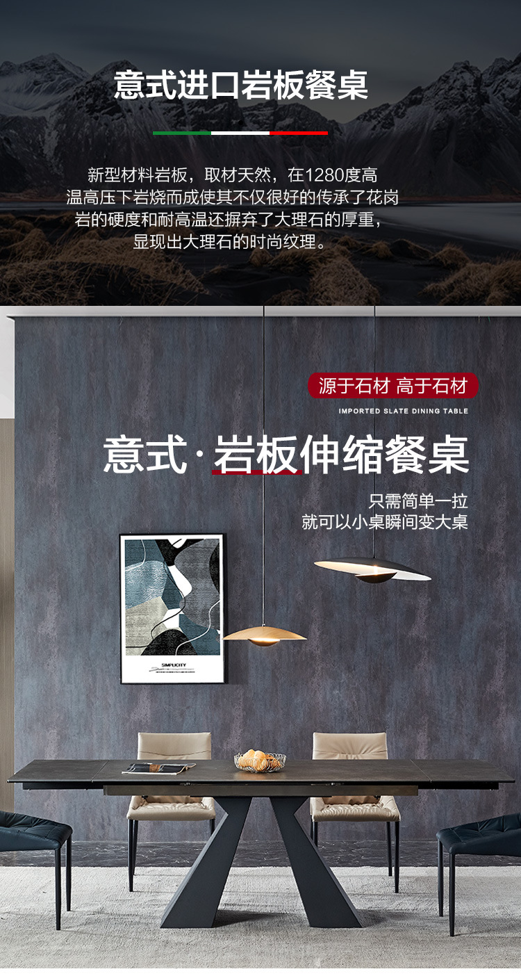 商品名称: 伸拉台餐桌伸缩岩板餐桌轻奢多功能饭桌