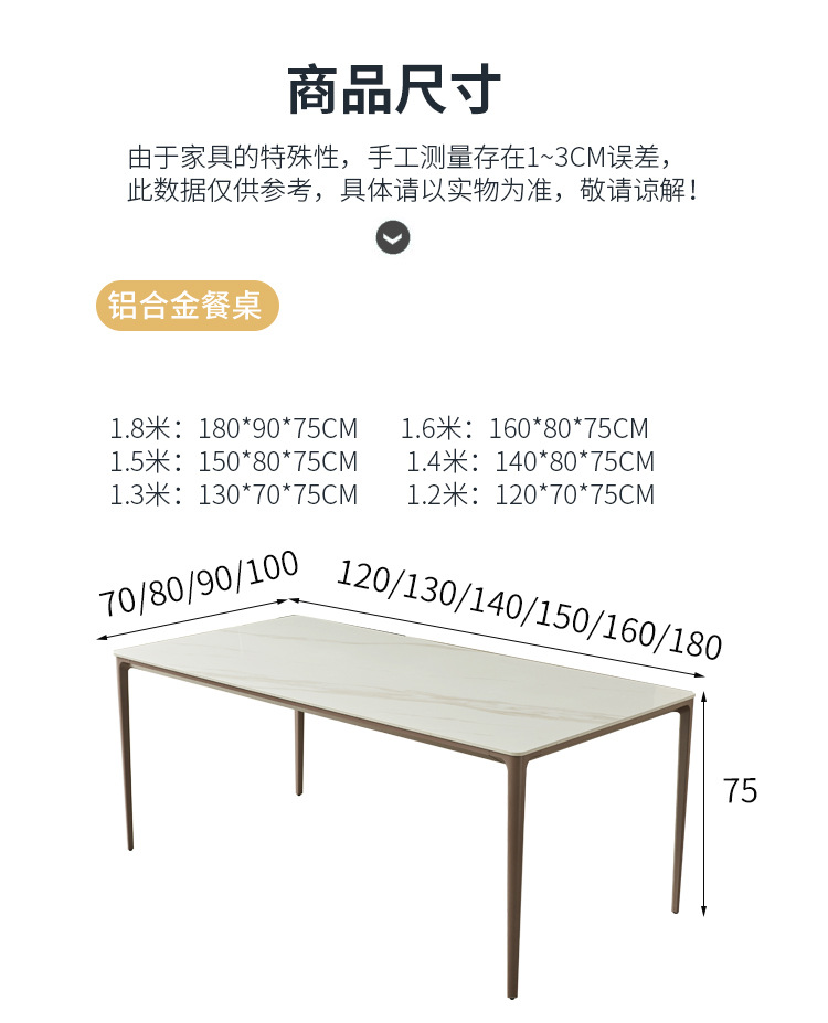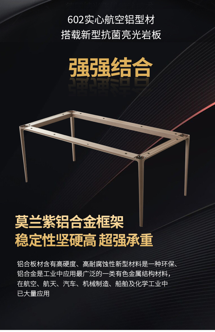 商品名称: 莫兰紫铝合金岩板餐桌长方形饭桌多功能桌子