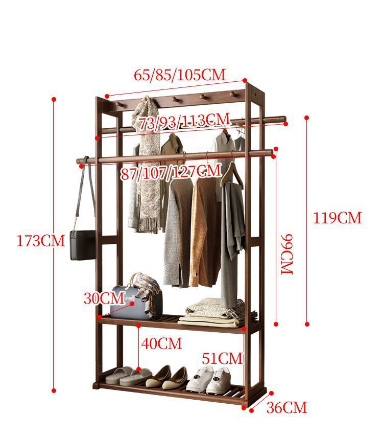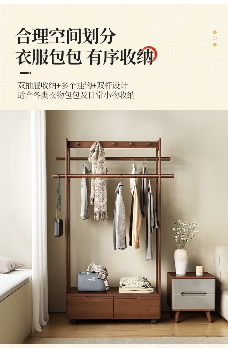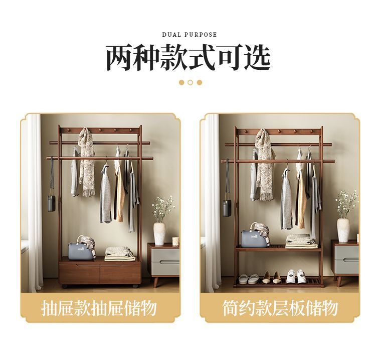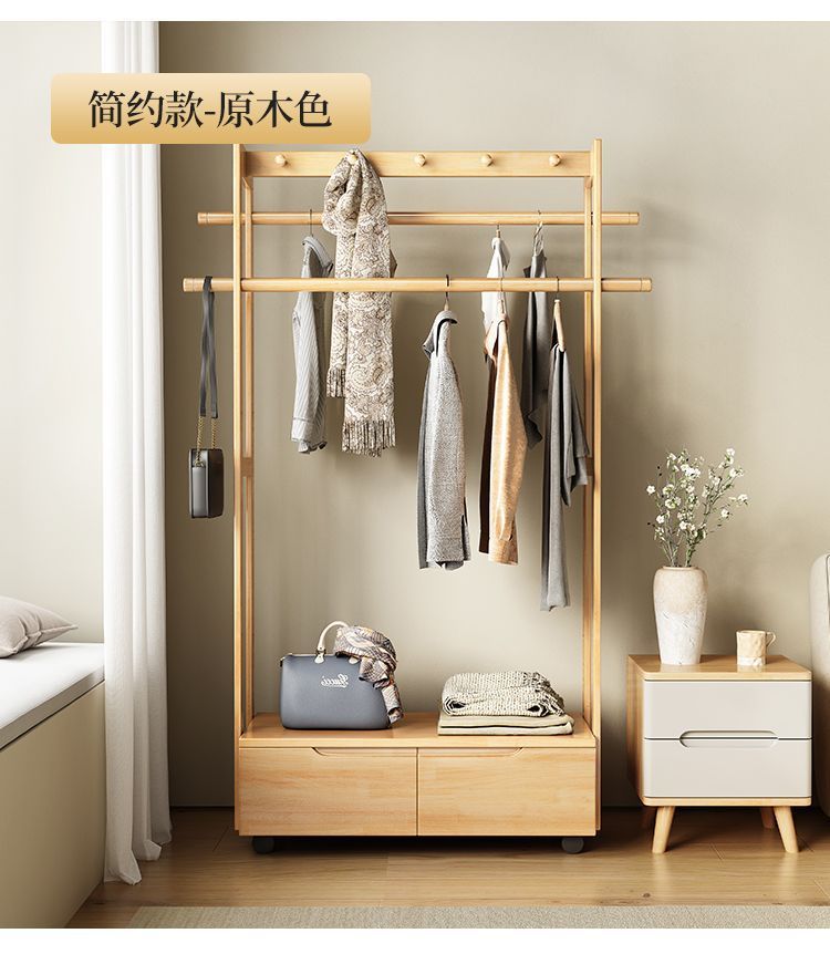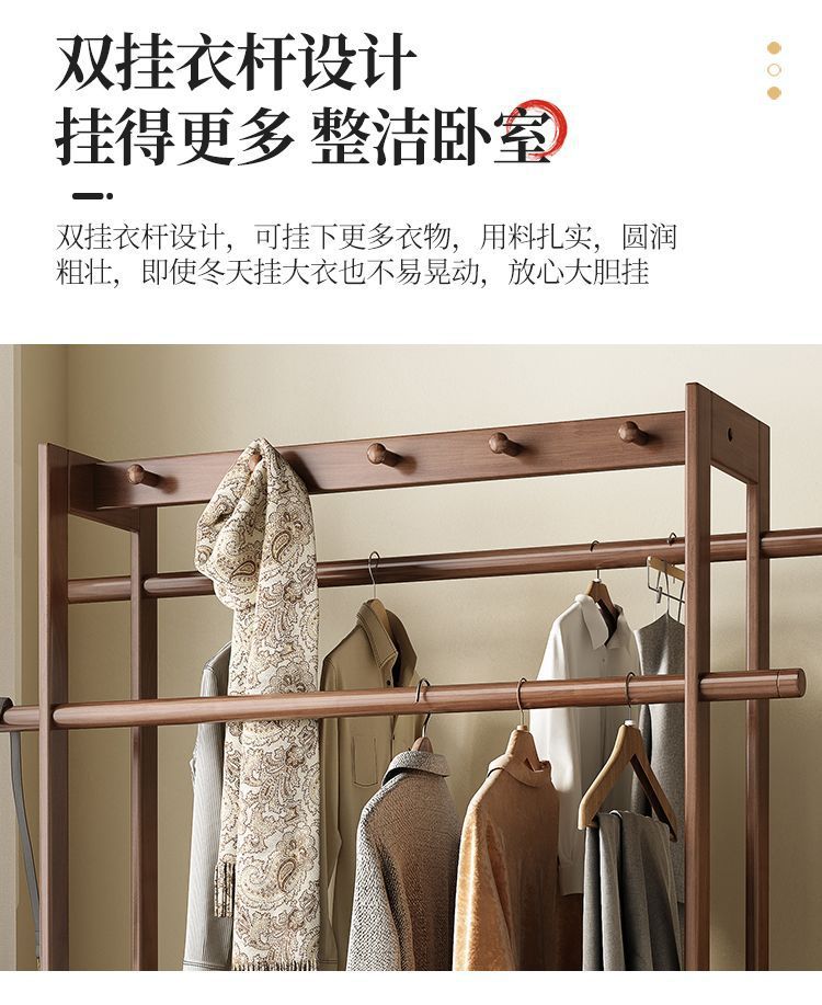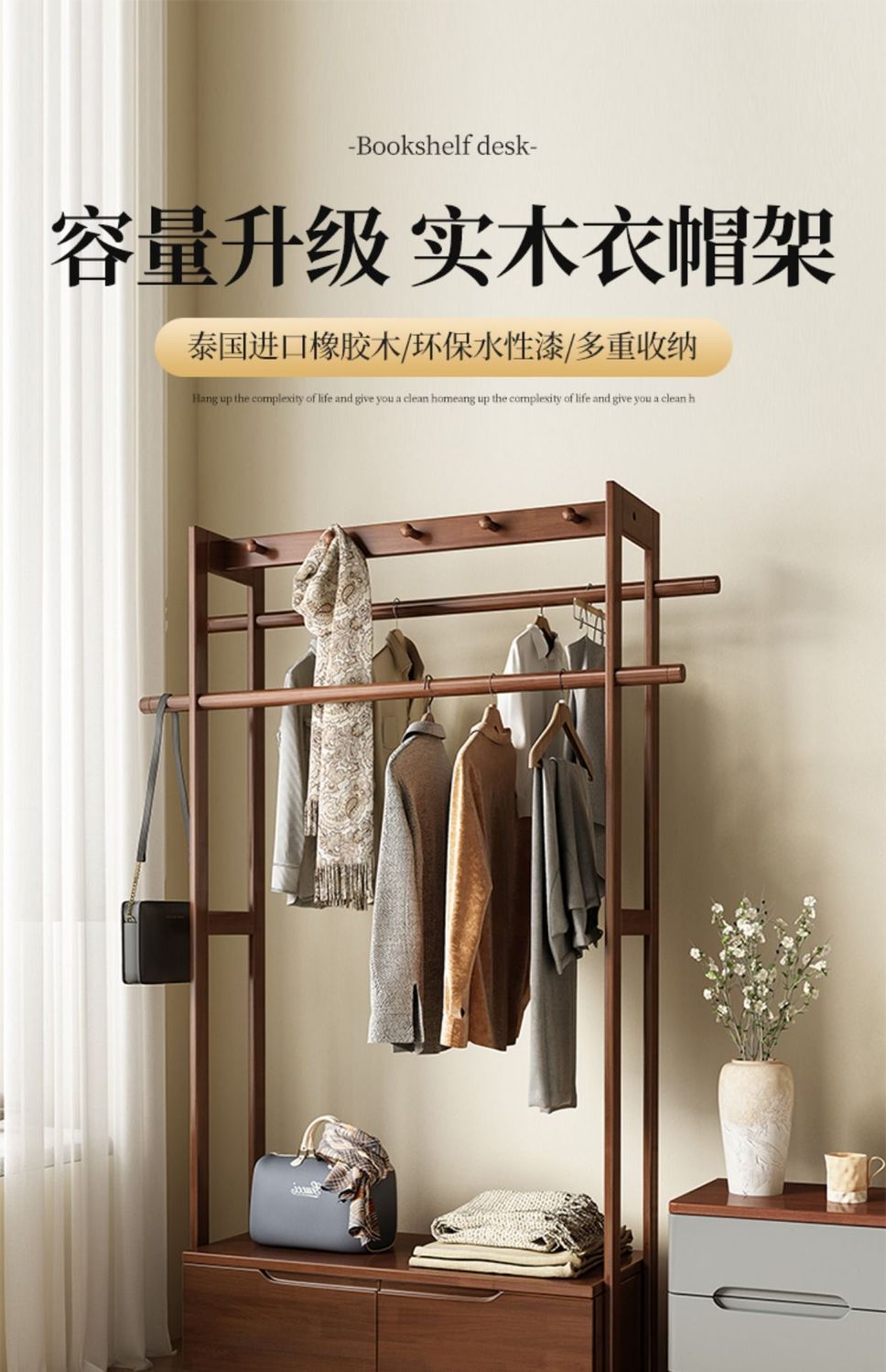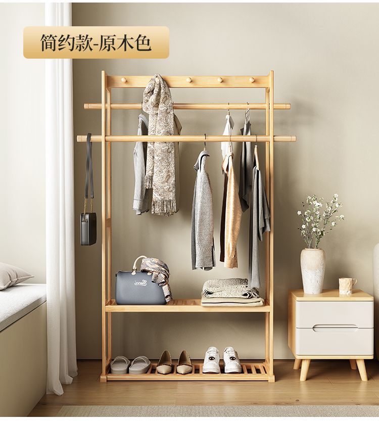 商品名称: 实木衣帽架落地挂衣架衣服架子收纳置物架