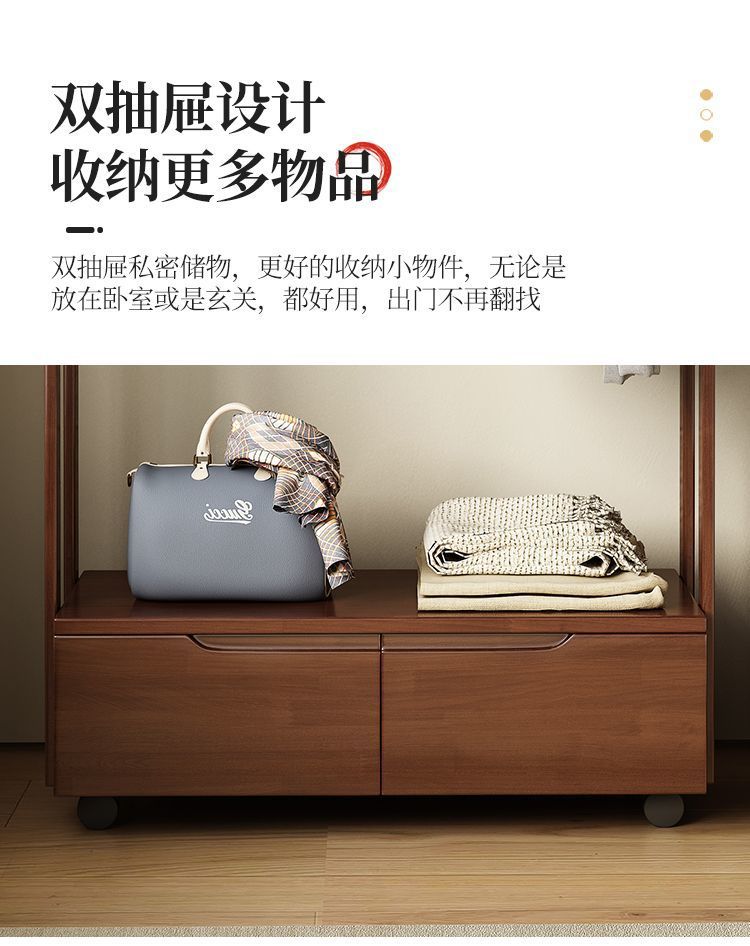 磷贝 实木衣帽架落地挂衣架衣服架子收纳置物架 1730*1050*360
