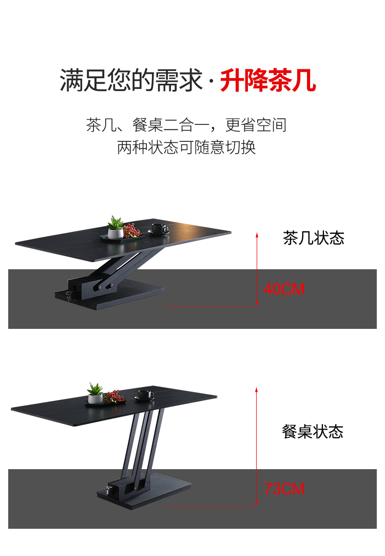 商品名称: 岩板升降茶几餐桌多功能升降桌两用桌子饭桌