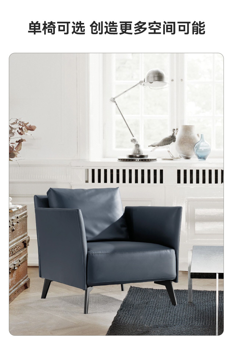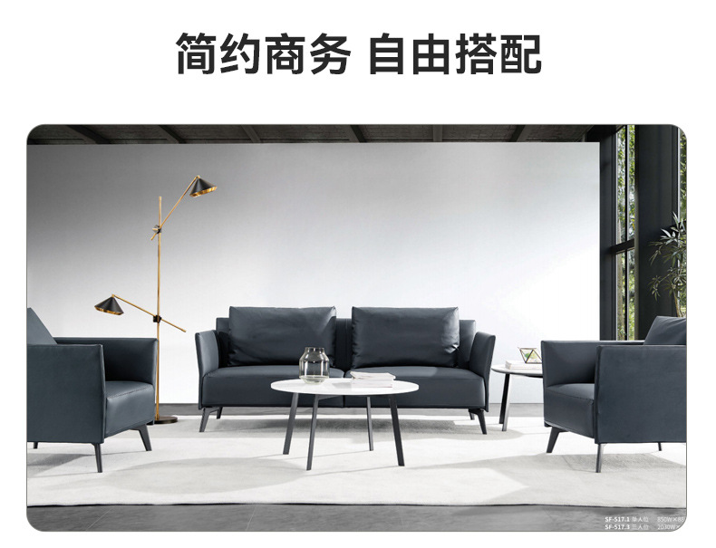 商品名称: 蓝色办公皮质沙发简约会客商务接待1+1+3单人三人位办公室沙发