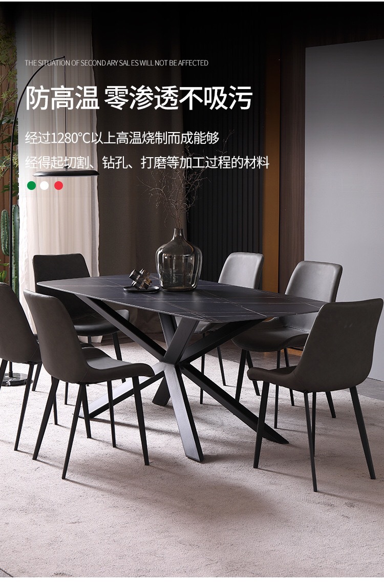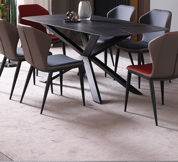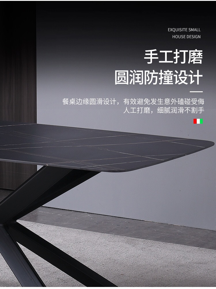 商品名称: 米字型岩板餐桌长方形西餐吃饭桌多功能桌子