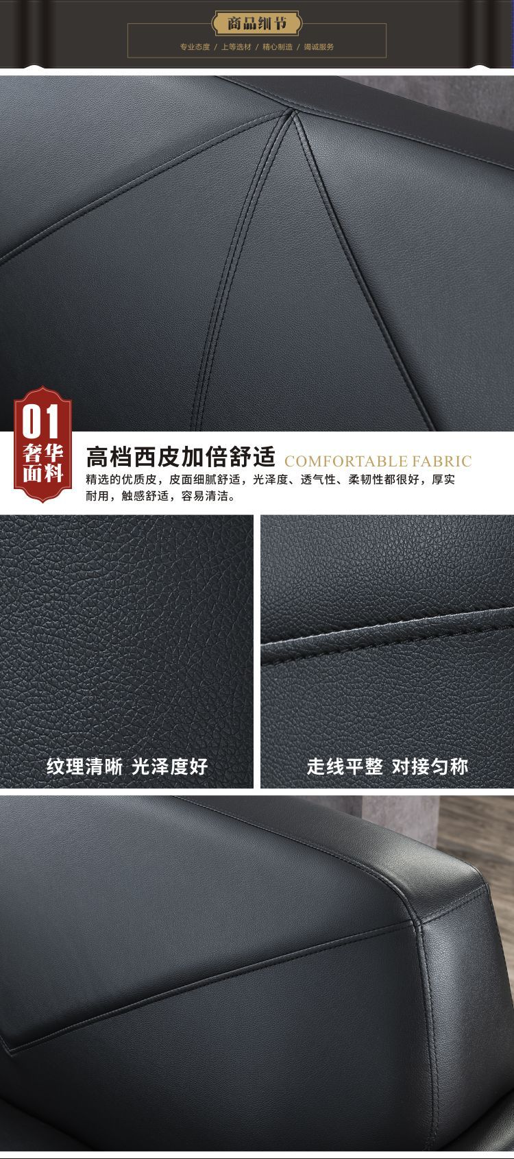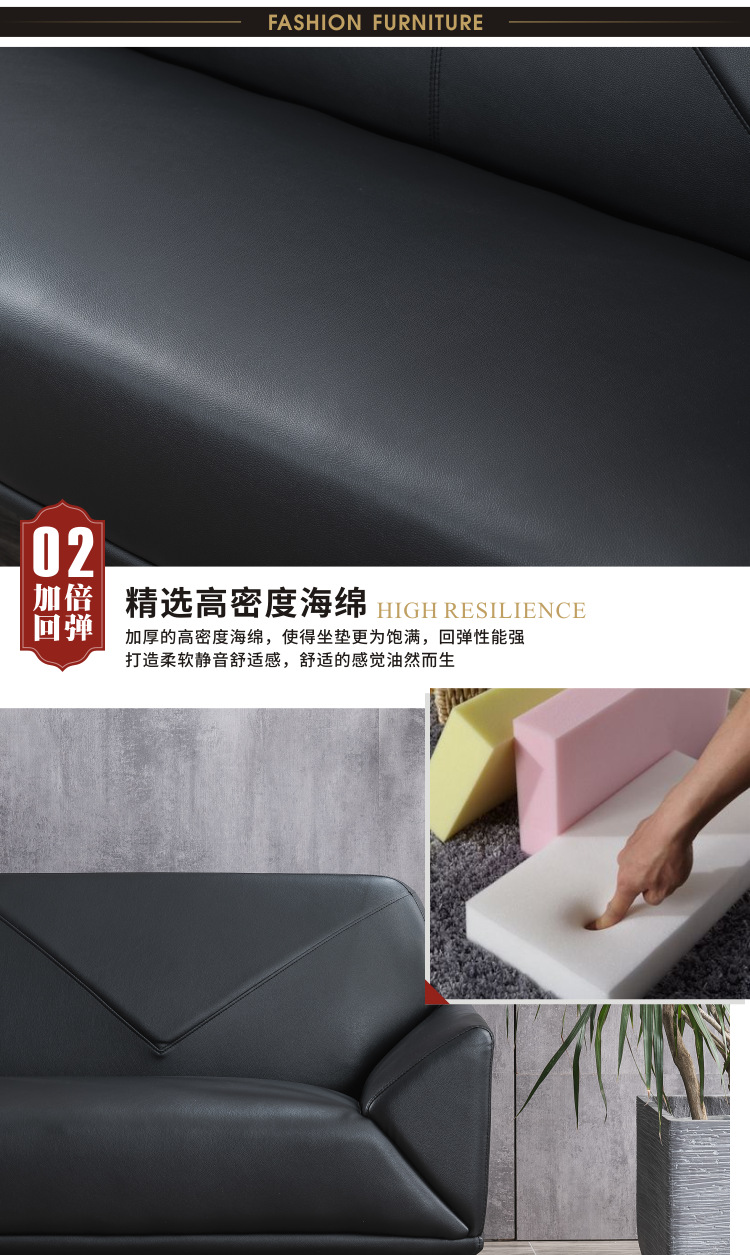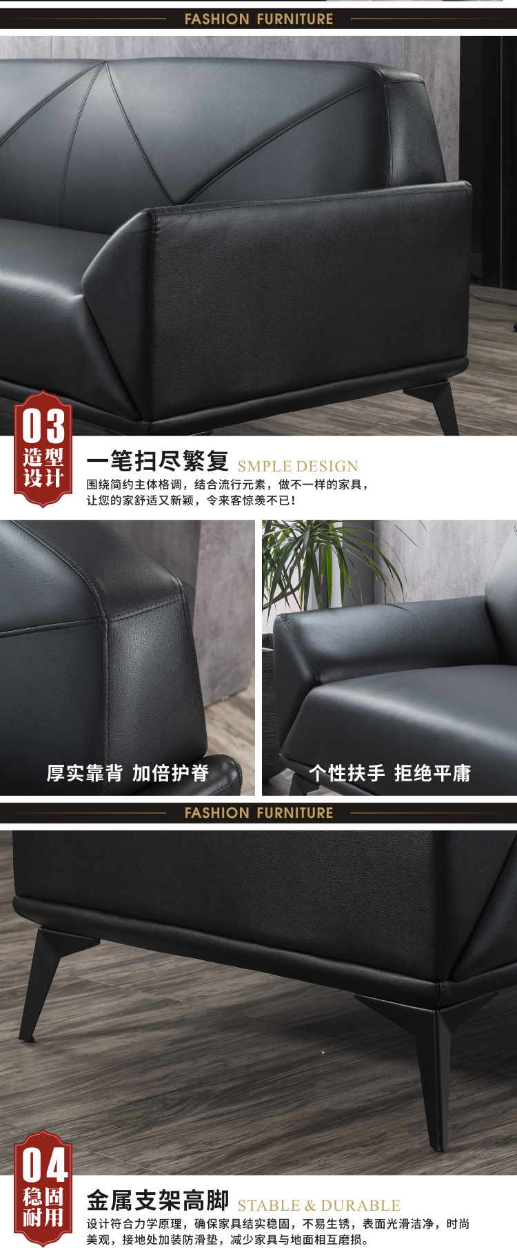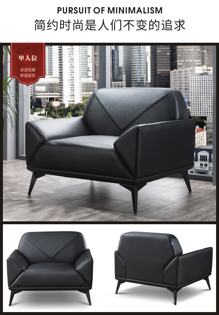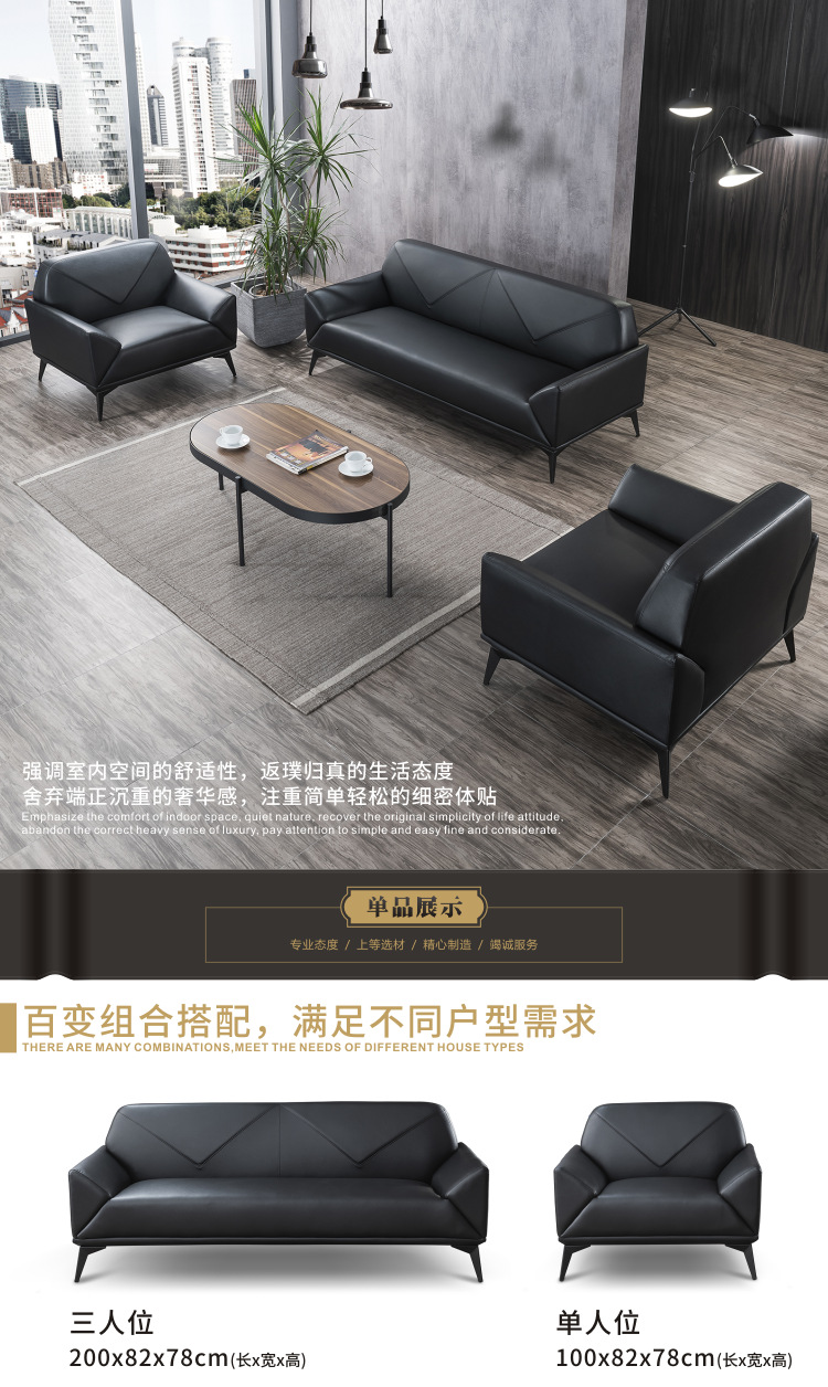 磷贝 办公室沙发商务会议贵宾接待会客休闲洽谈3+1+1组合沙发 三人位780*2000*820 单人位780*1000*820