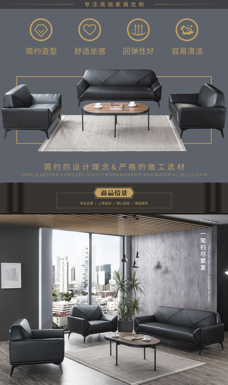 商品名称: 办公室沙发商务会议贵宾接待会客休闲洽谈3+1+1组合沙发