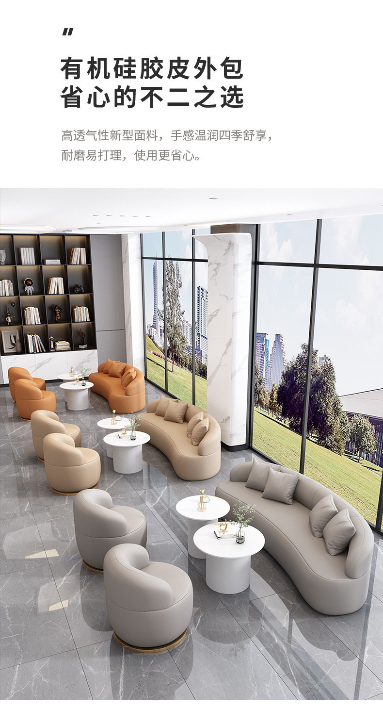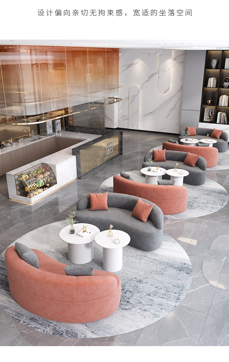 商品名称: 双人位月亮沙发圆弧形接待洽谈会客休闲等候沙发