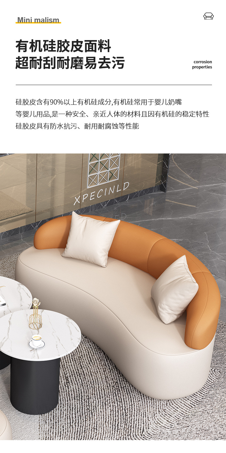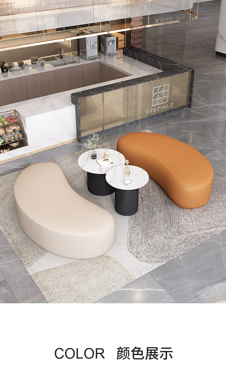 磷贝 双人位月亮沙发圆弧形接待洽谈会客休闲等候沙发 750*1600*800
