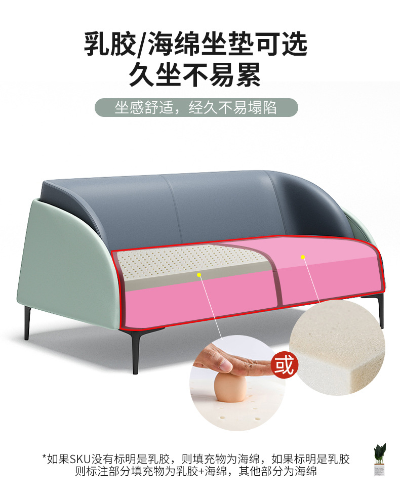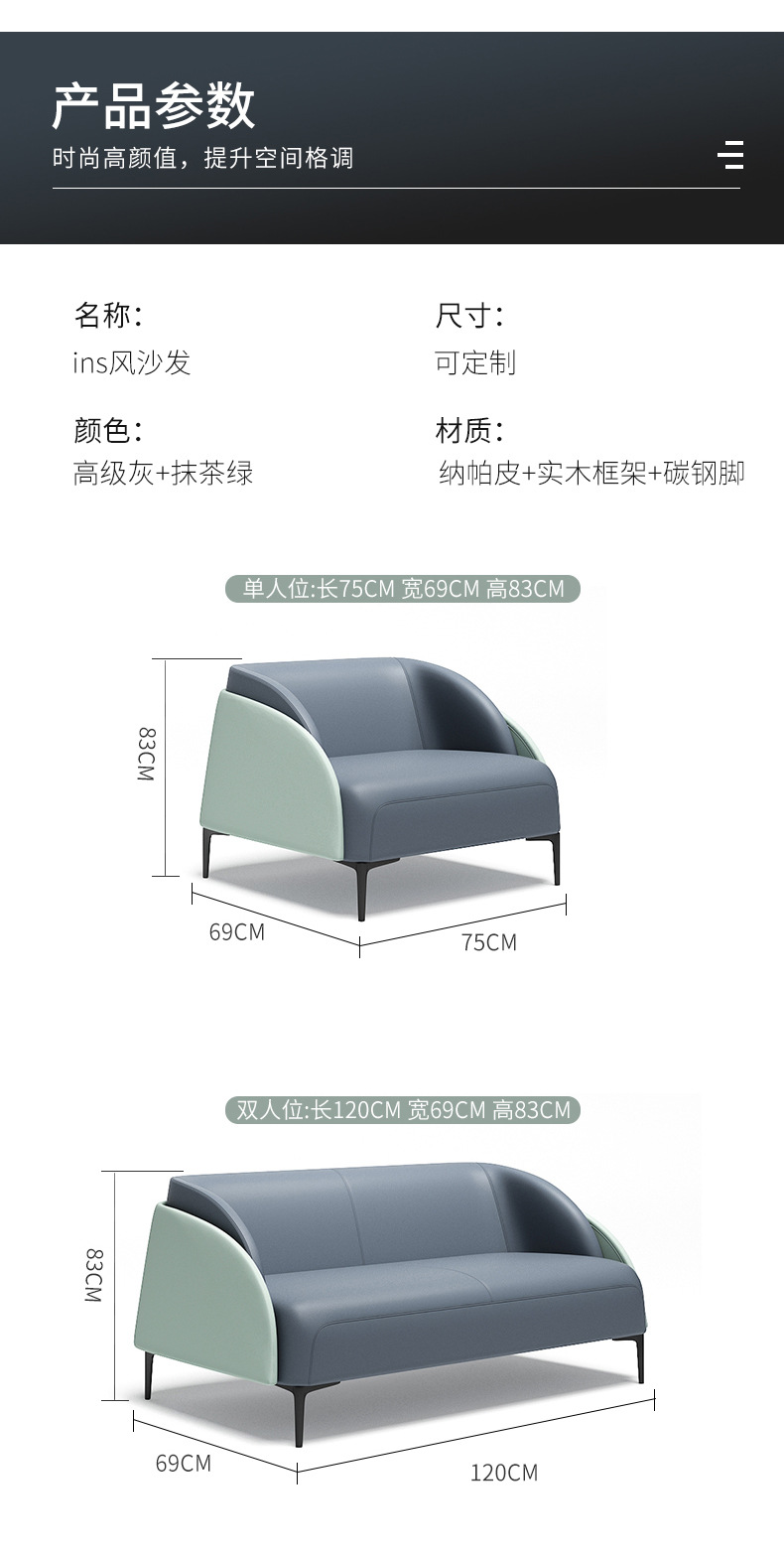 磷贝 1+1+3拼色撞色办公沙发组合接待商务会客办公沙发 三人位:830*1700*690 单人位:830*750*690