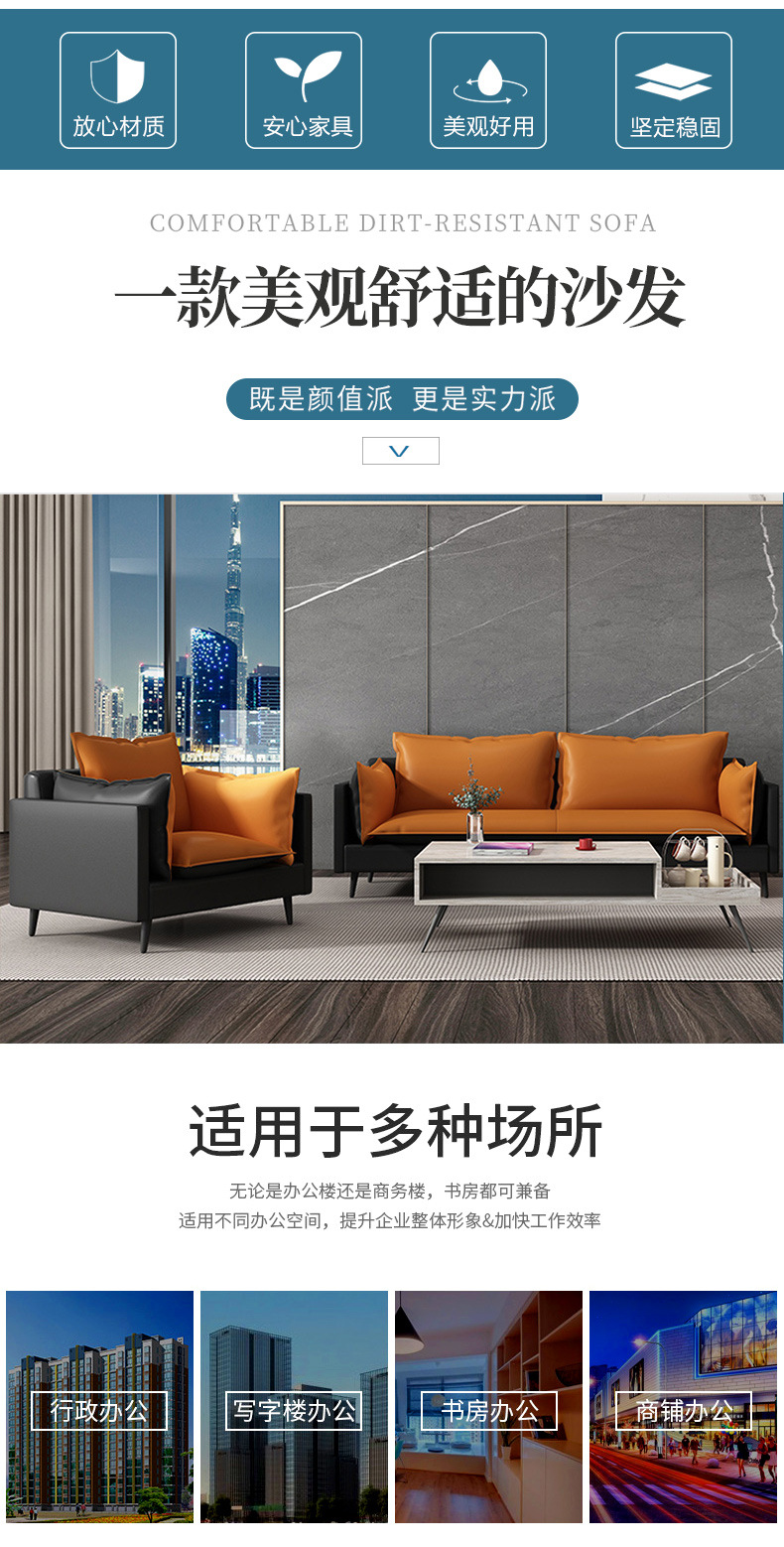 商品名称: 1+1+3商务办公沙发组合拼色接待会客洽谈办公沙发