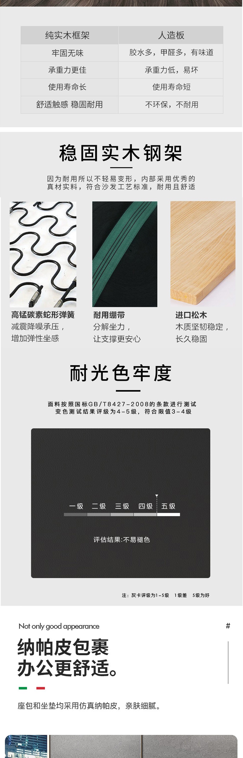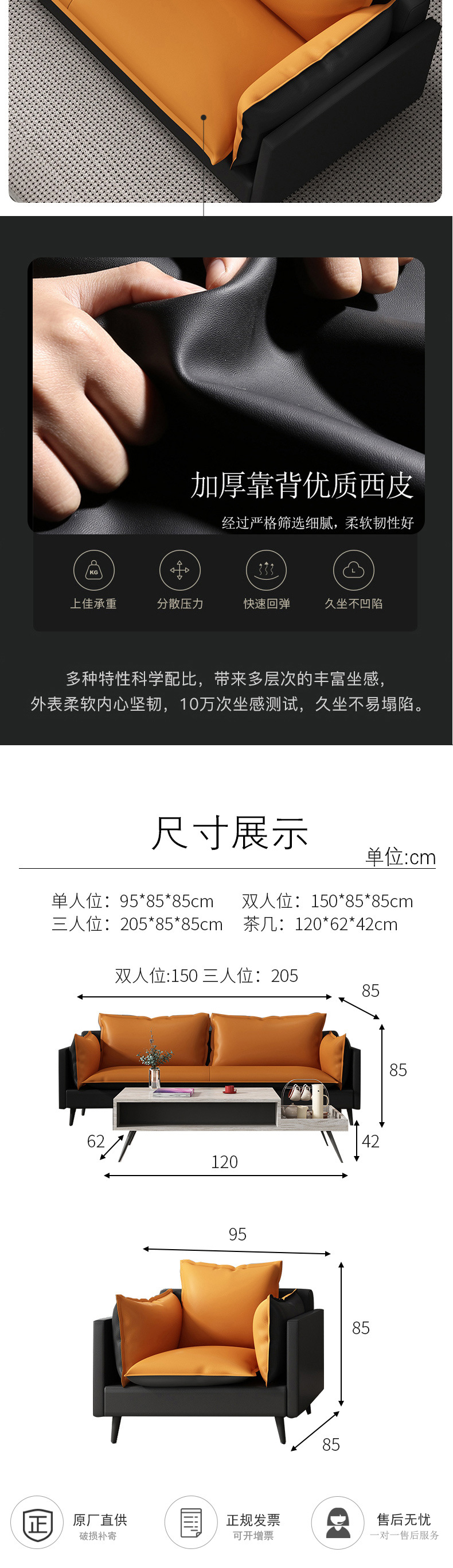 磷贝 1+1+3商务办公沙发组合拼色接待会客洽谈办公沙发 三人位:850*2050*850 单人位:850*950*850