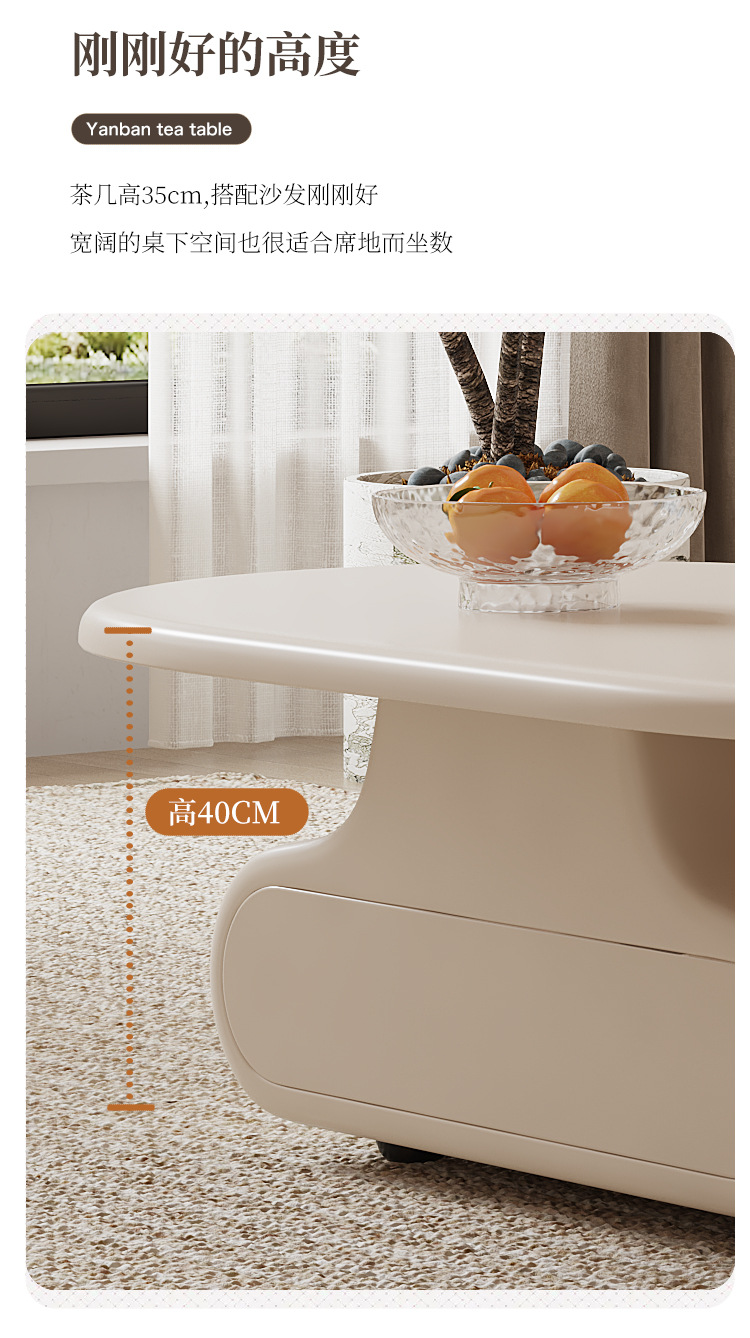 磷贝 花瓶茶几茶台奶油风岩板云朵茶几创意异形茶桌23 400*1300*700