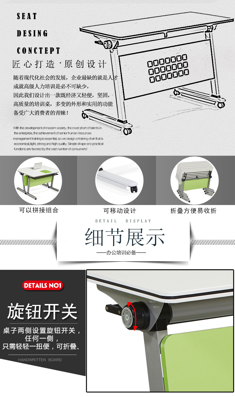 商品名称: 拼接折叠桌翻板桌可移动多功能办公会议桌培训桌长条桌组合桌11
