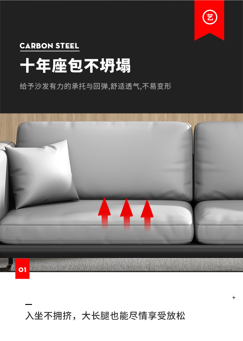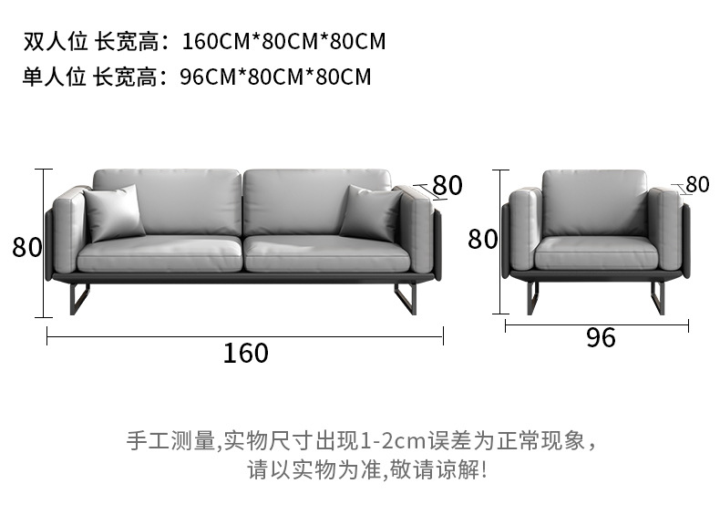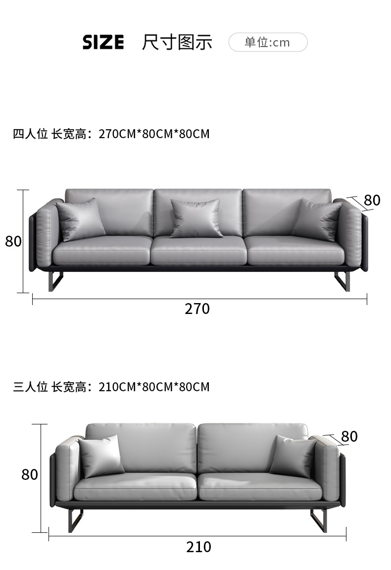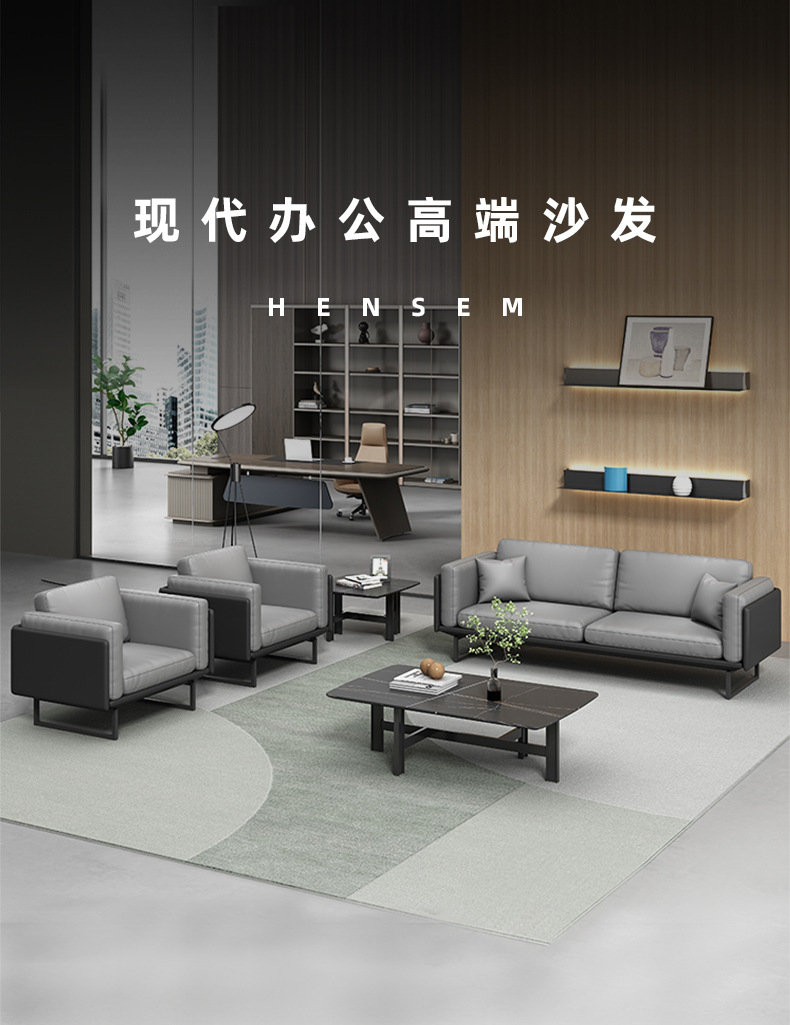 磷贝 1+1+3办公沙发组合现代商务接待休闲办公沙发 三人位:800*2100*800 单人位:800*960*800