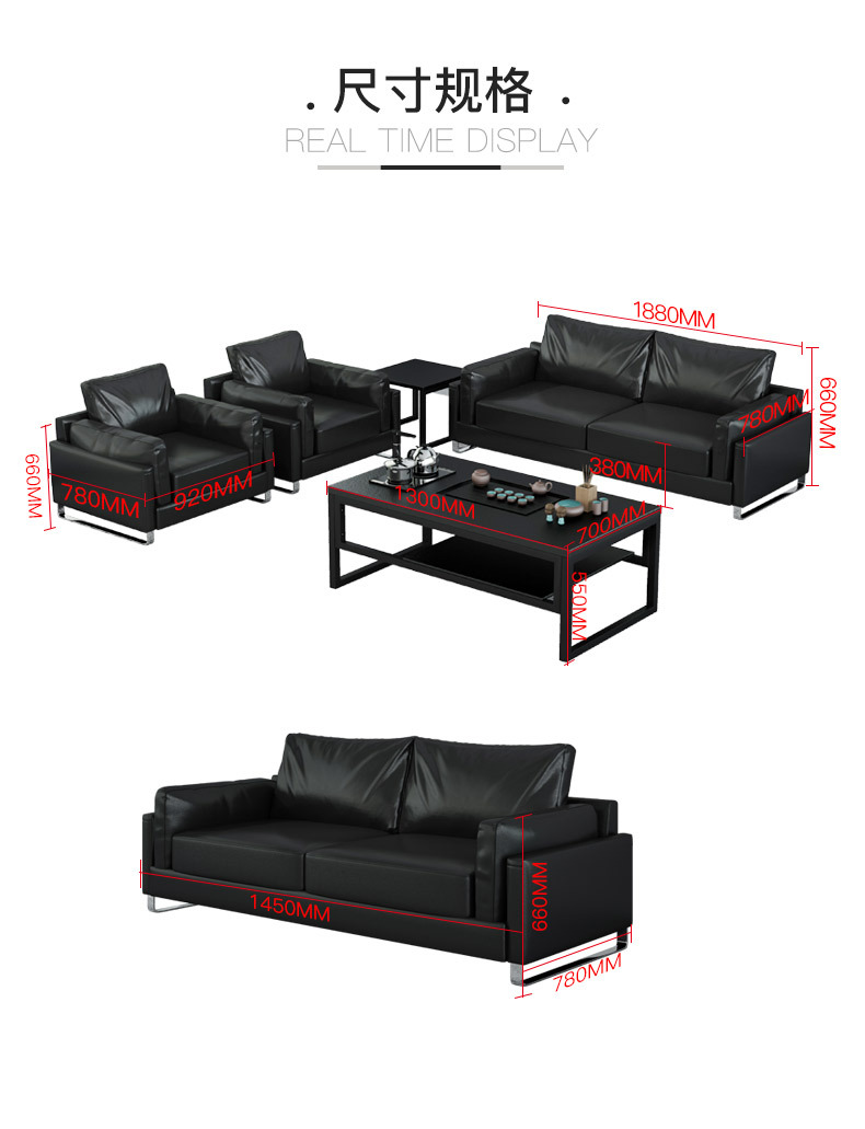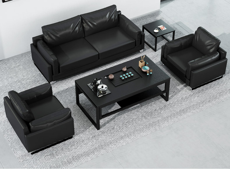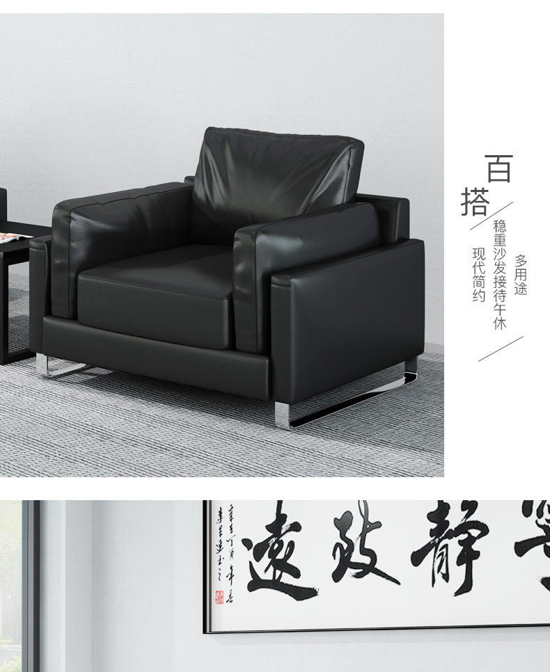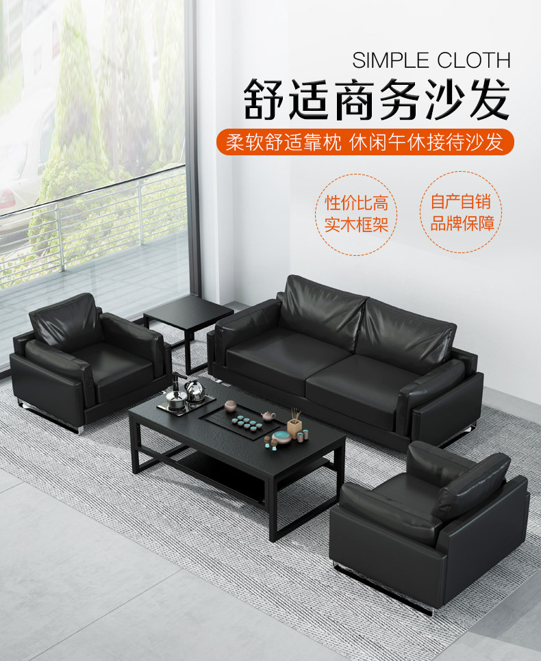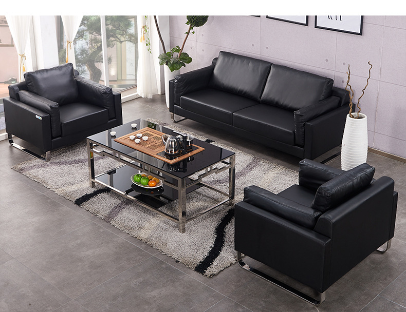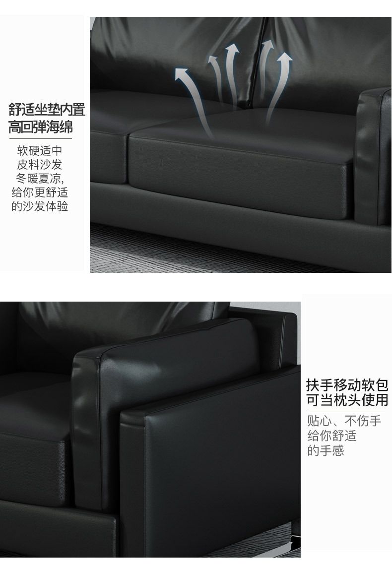 商品名称: 1+1+3黑色商务办公沙发简约会客接待沙发可移动软包扶手休闲沙发组合