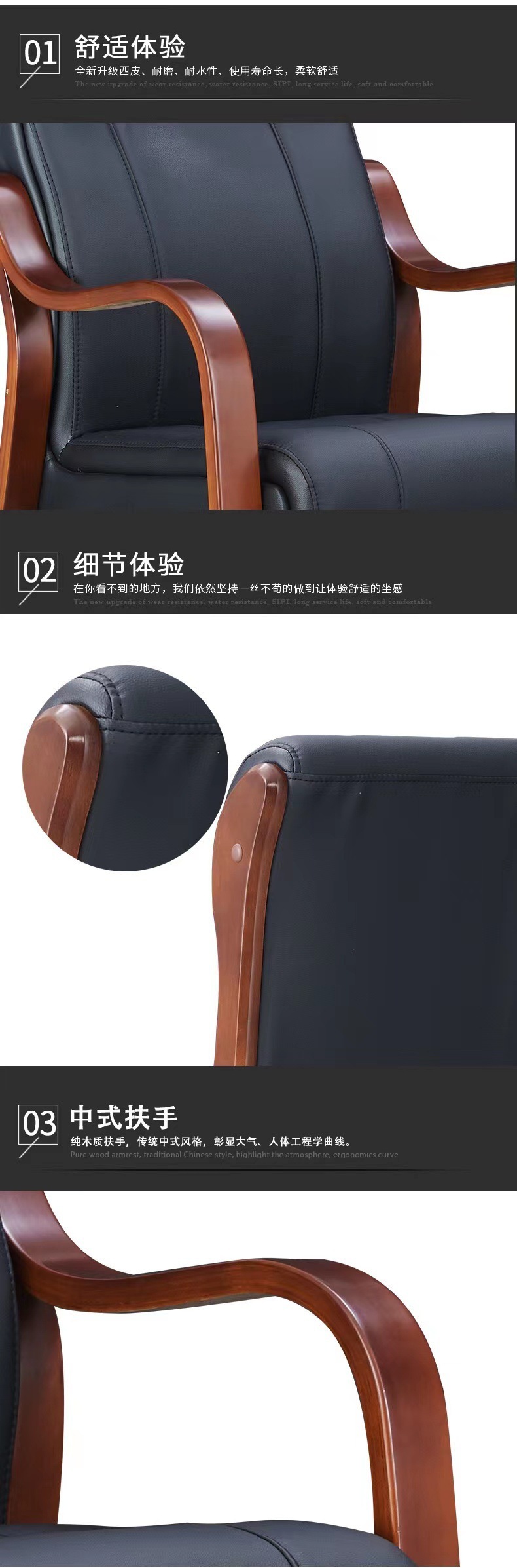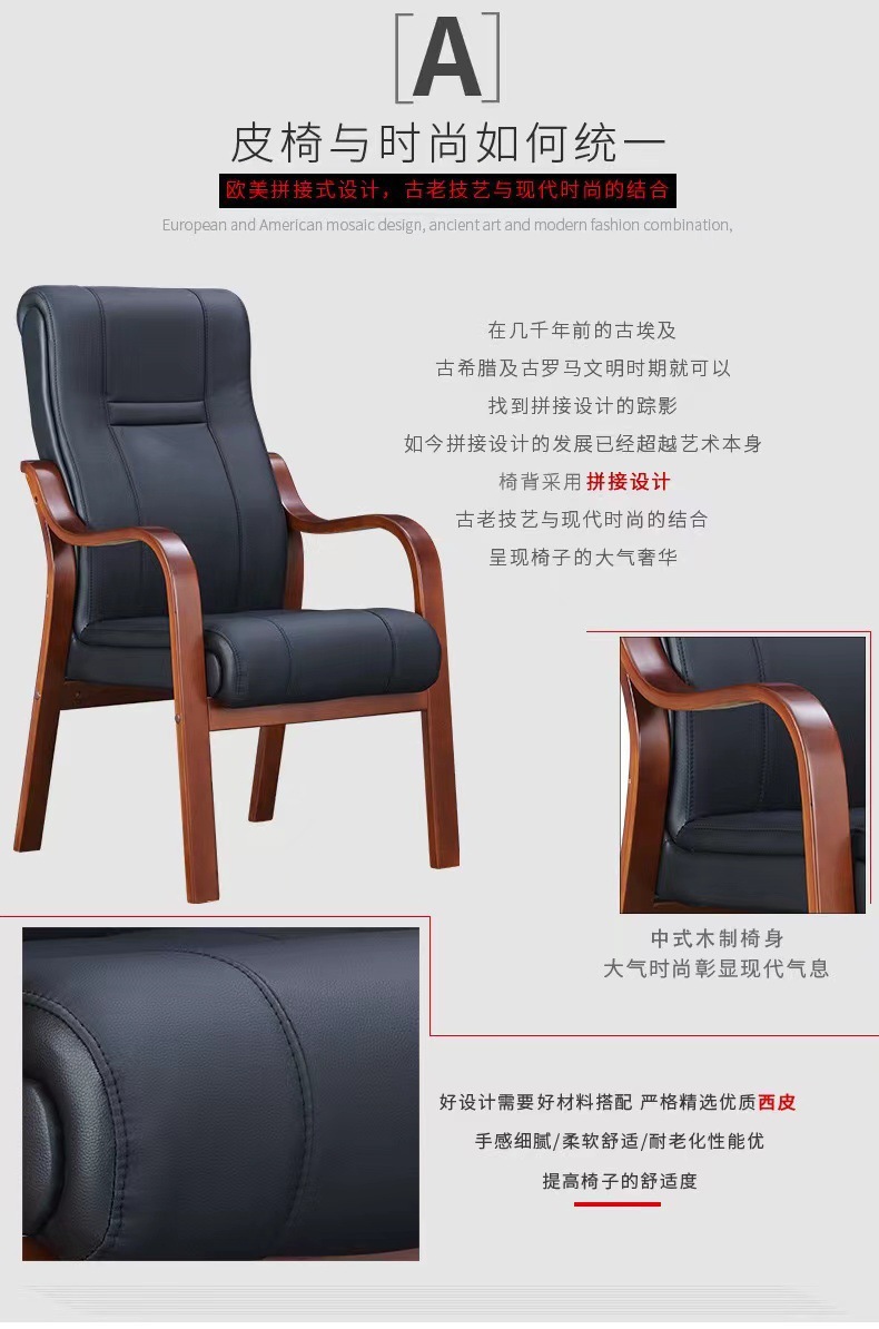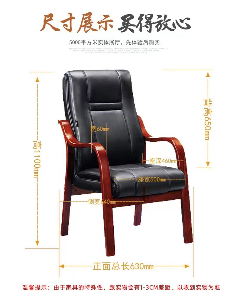 商品名称: 实木会议椅办公椅培训椅皮质靠背椅电脑椅职员椅带扶手麻将椅4