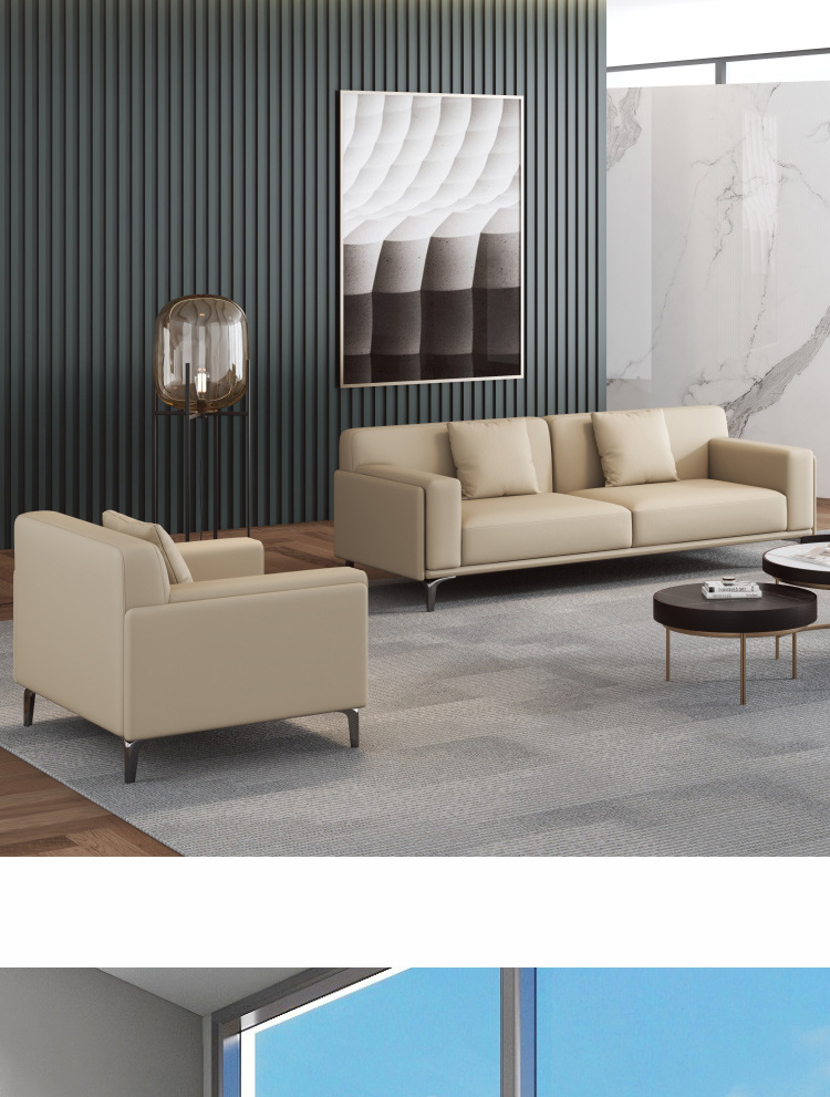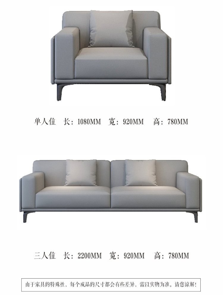 磷贝 办公沙发1+1+3组合商务洽谈接待意式办公室沙发 三人位:780*2200*920 单人位:780*1080*920