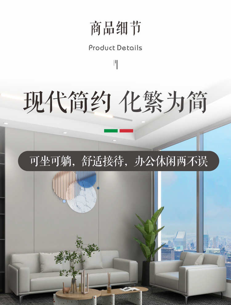 商品名称: 办公沙发1+1+3组合商务洽谈接待意式办公室沙发
