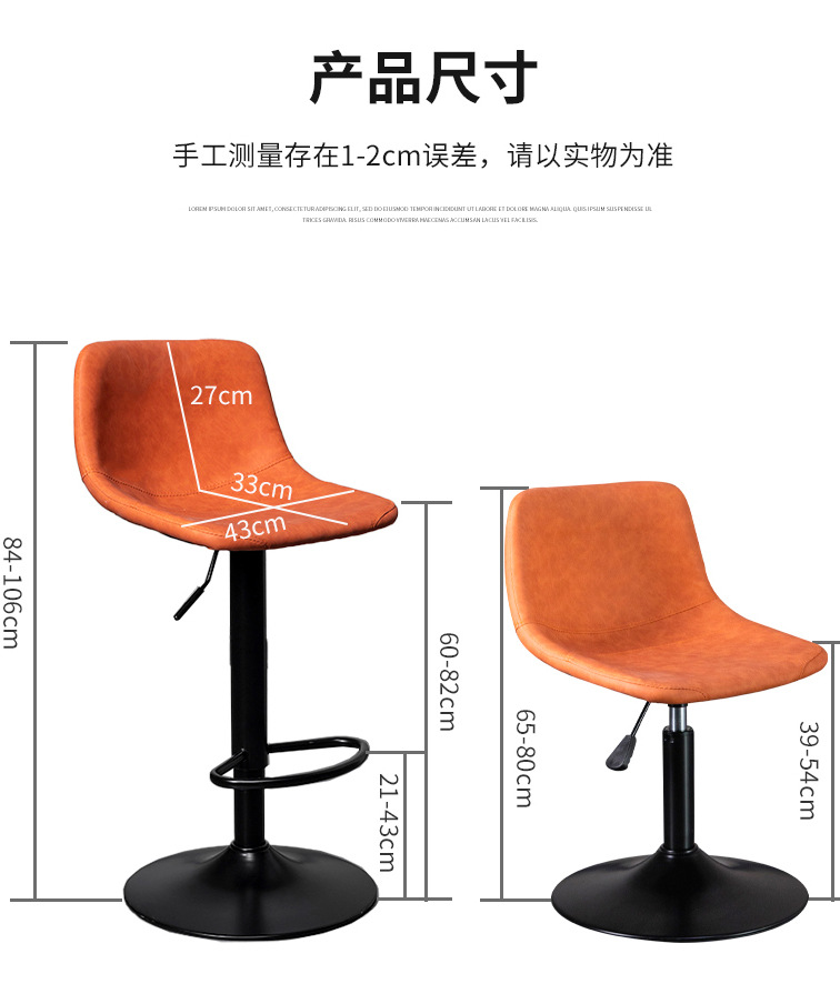 商品名称: 吧椅吧台椅高脚椅升降旋转吧台凳休闲椅铁艺高脚凳靠背酒吧椅115