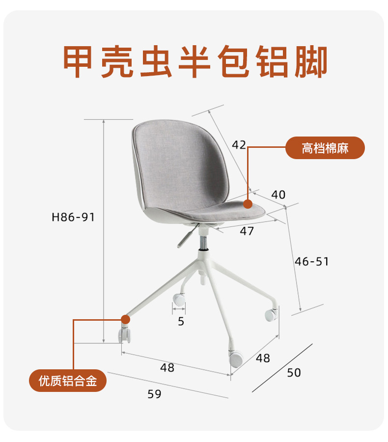 磷贝 甲壳虫办公椅休闲旋转升降转椅电脑椅学习椅125 860-910*480*480