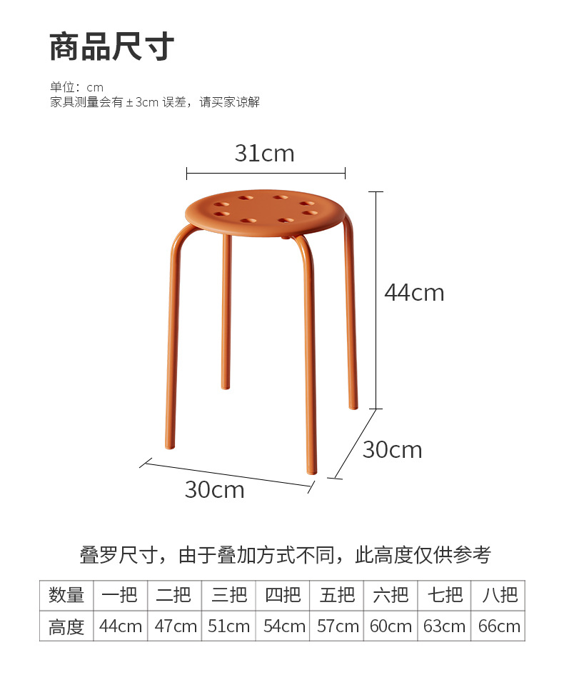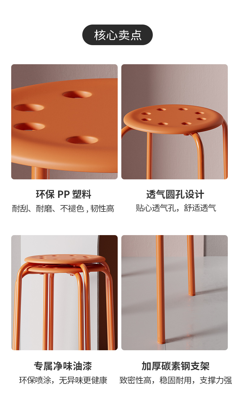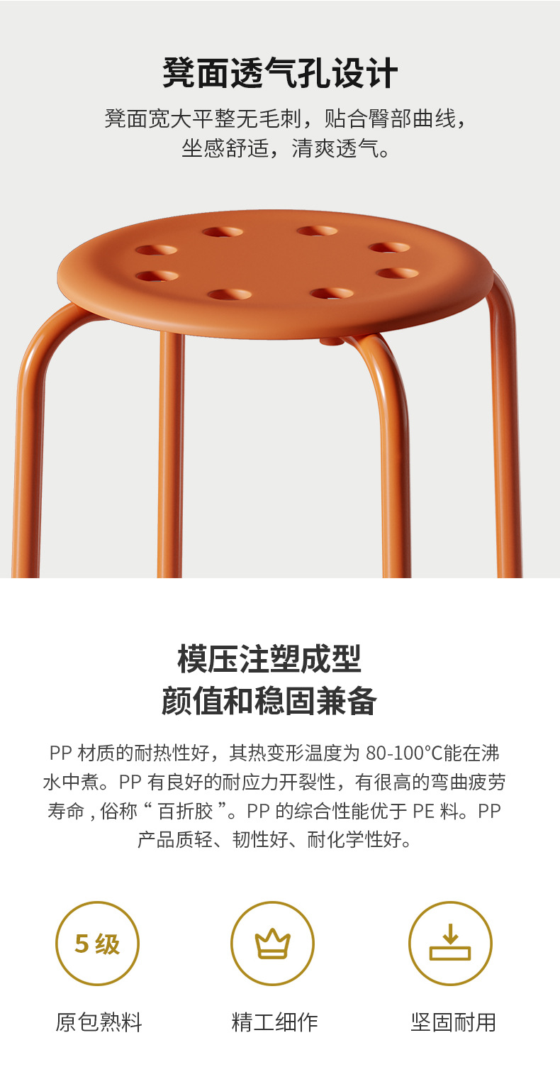 商品名称: 八孔凳小圆凳可叠放塑料凳子餐桌饭凳椅子104