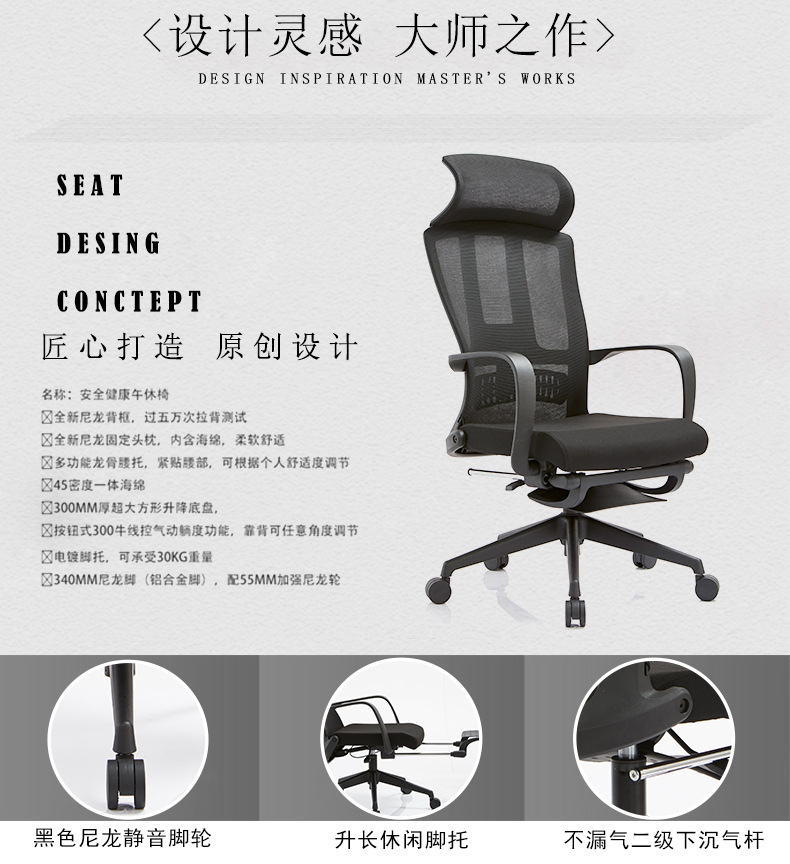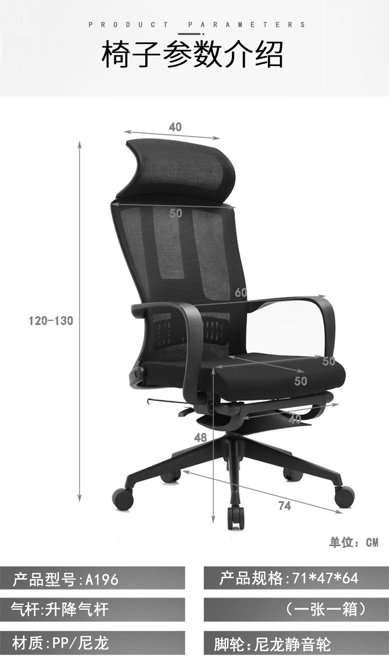 磷贝 办公椅人体工学椅老板椅电竞椅电脑椅网椅会议职员椅午休椅转椅56 1200-1300*600*500