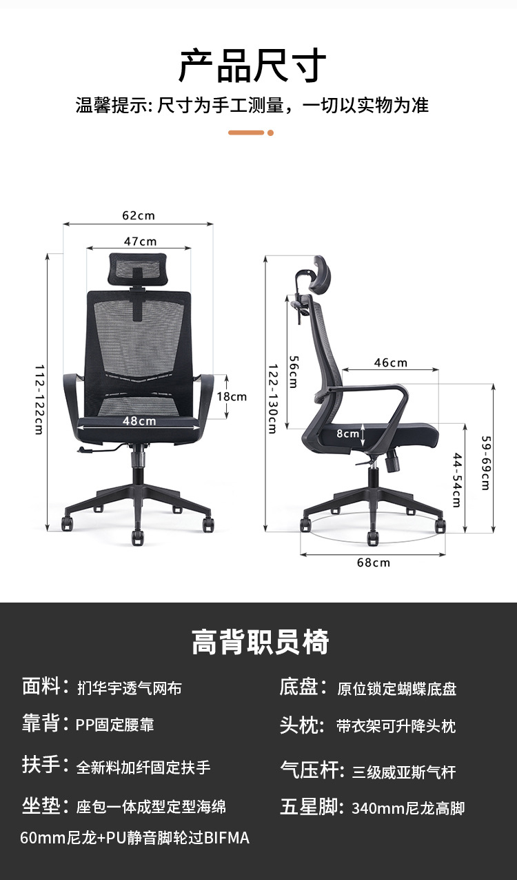 磷贝 办公椅人体工学椅老板椅电竞椅电脑椅网椅会议职员椅53 1120-1220*620*680